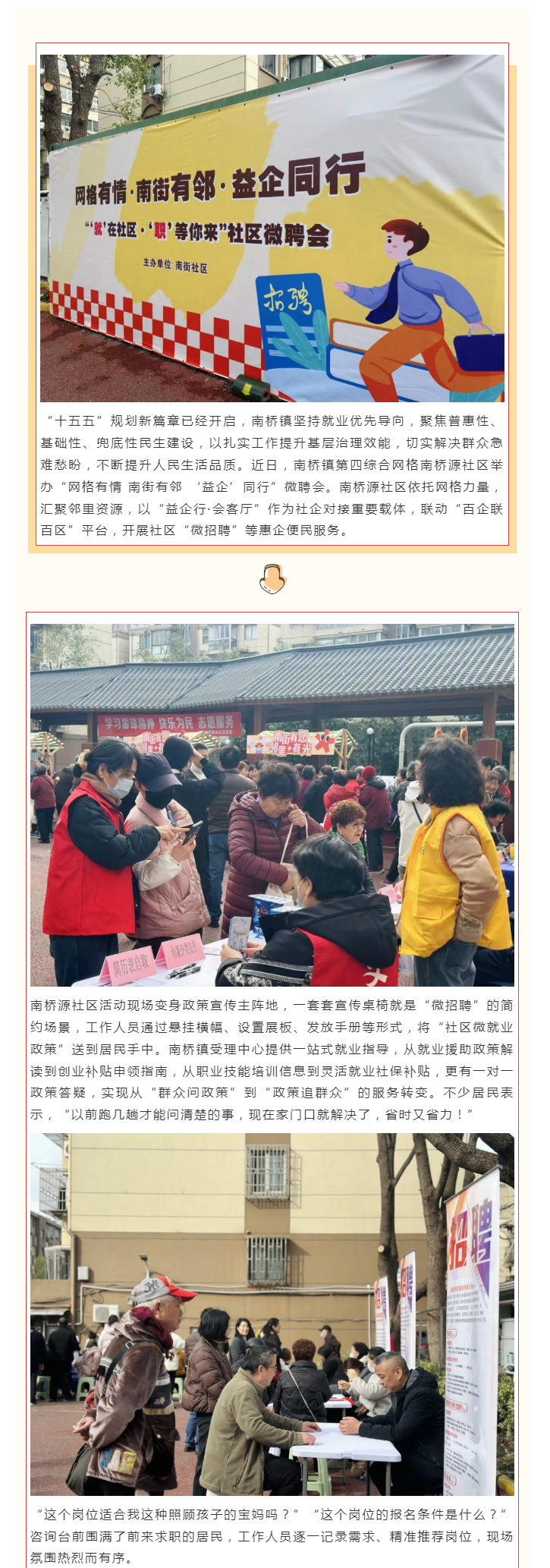遛个弯的工夫,工作到手了?南桥镇这场“微招聘”真香!丨策马十五五