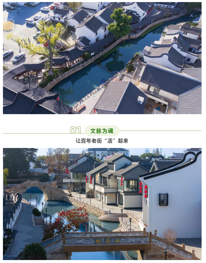 一方面,不断提升人居环境。拆除违章建筑,开展古镇“减负”和“美容”整治行动,对影响古镇安全和历史风貌的违章建筑予以拆除,贯通河道滨水走廊,还古镇清朗姿容。整治雨污混接,开展源头治理,重新建设老街市政综合管廊200余米,既截污纳管,又解决了影响居民生活数十年的污水倒灌难题。开展河道整治提升工程,对涉及老街区域的7条河道,进行新建护岸、水力冲挖、增加绿化、生态培育等,打造水清岸绿的生态水域。