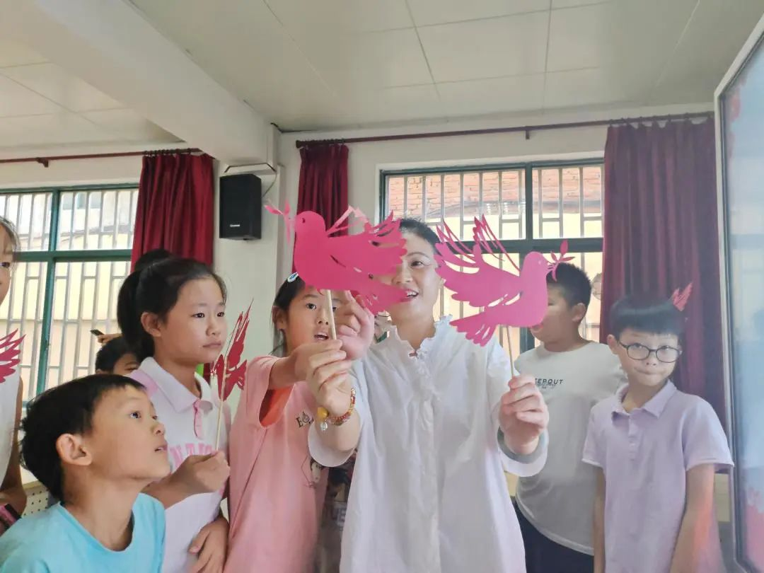 “在一些重大的活动中,特别是要表达心情很愉悦的时候,人们就会放飞一些和平鸽,和平鸽代表了和平、欢乐、喜庆。”讲台上,上海市非物质文化遗产(奉贤乡土纸艺)青村剪纸代表性传承人、青溪工匠钱肖红正在亲切地向孩子们讲解。钱肖红告诉记者:“要先告诉他们一个含义,他们才会有兴趣学下去。我希望他们通过制作“和平鸽”,在相互学习之间,学会和平共处、友爱互助。”