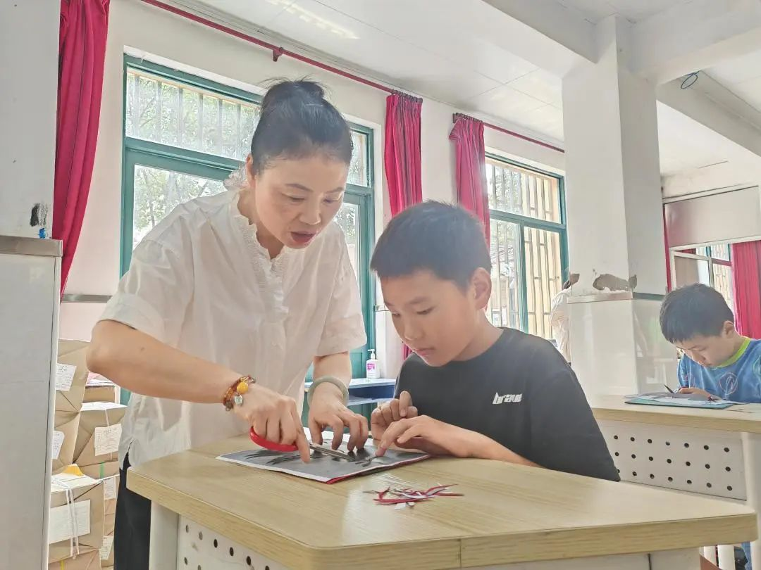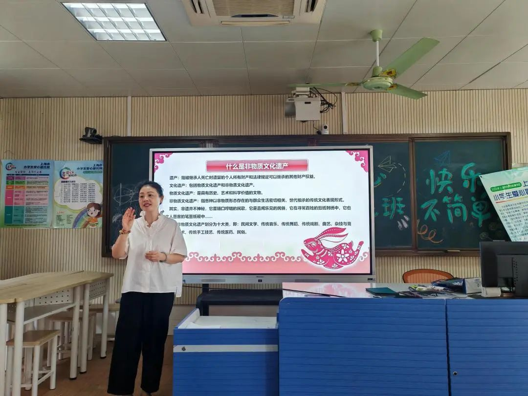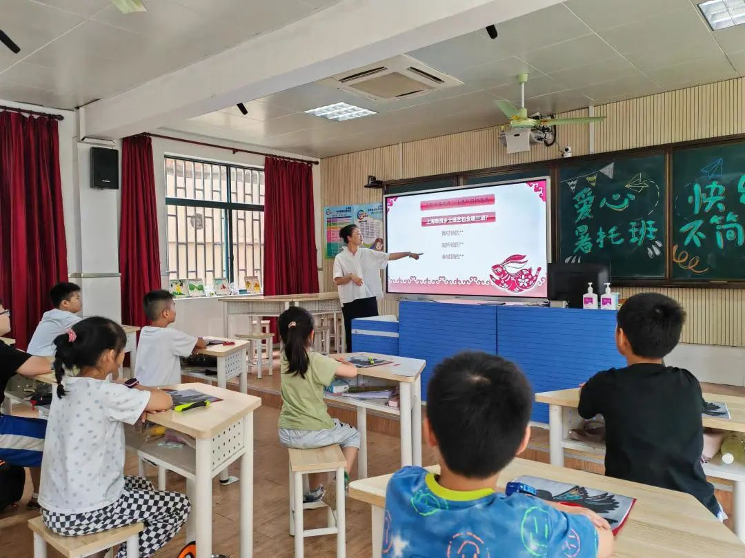 8月9日下午1点,在青村镇钱桥学校的一间教室里,孩子们正在听老师介绍着青村剪纸的由来。青村剪纸是“上海市非物质文化遗产”保护项目,正值暑假,青村镇总工会开展的“劳模匠心进暑托”活动来到校园,让孩子们近距离感受着非遗文化的独特魅力,增进对传统文化的了解。