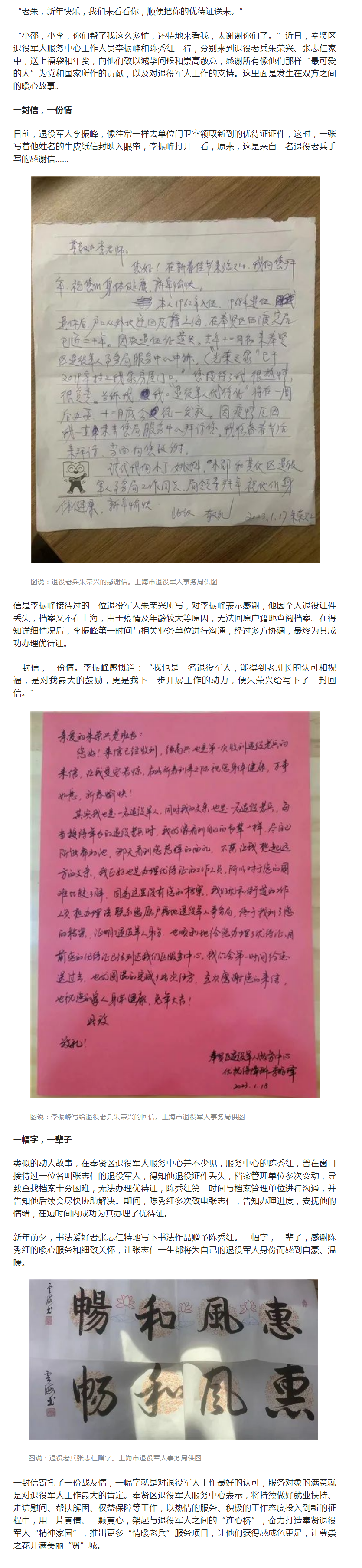一封信,一份情;一幅字,一辈子,发生在奉贤区退役军人服务中心的暖心故事