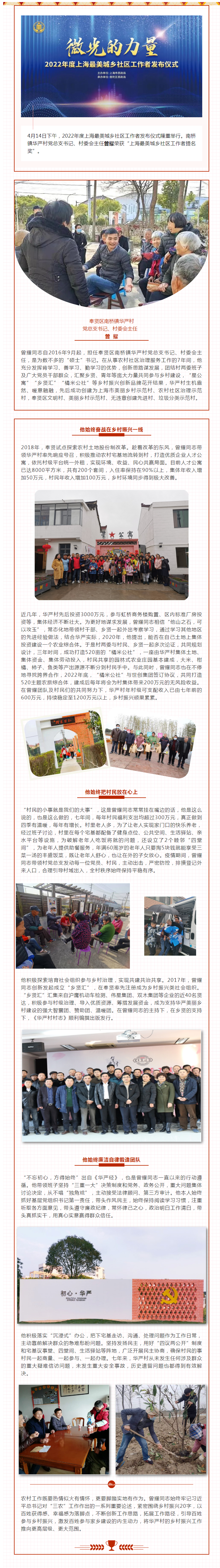 南桥镇华严村村主任曾耀荣获“上海最美城乡社区工作者提名奖”!
