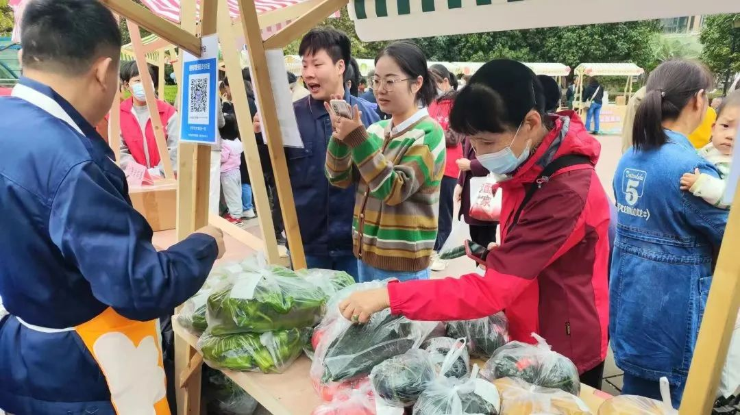 除了本地新米外,活动现场“百企联百区”农林组的一帆果蔬、群燕、玺爱、杨黄果蔬、橘米公社、小元国食品等十多家合作社以“合伙人”“赶大集”的形式把优惠又新鲜的南瓜、杭白菜、卷心菜、西红柿、土豆、芹菜、橘子等各类农产品送到居民家门口。
