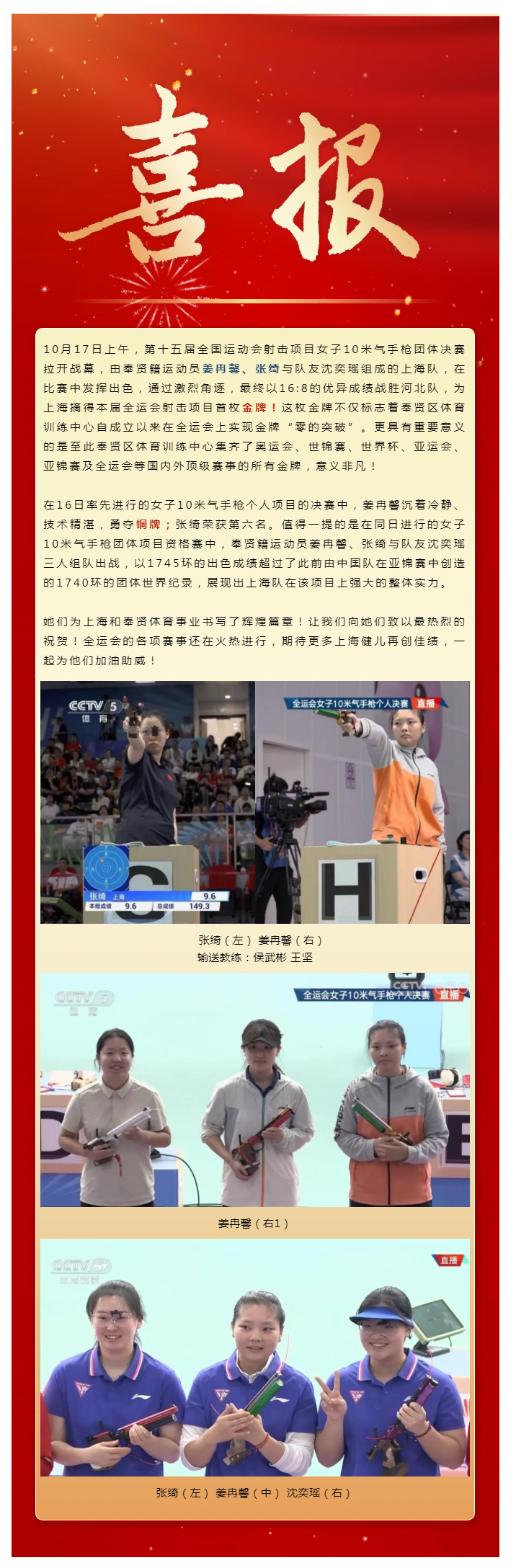 喜报!奉贤力量助力上海队夺得全运会射击项目首金→
