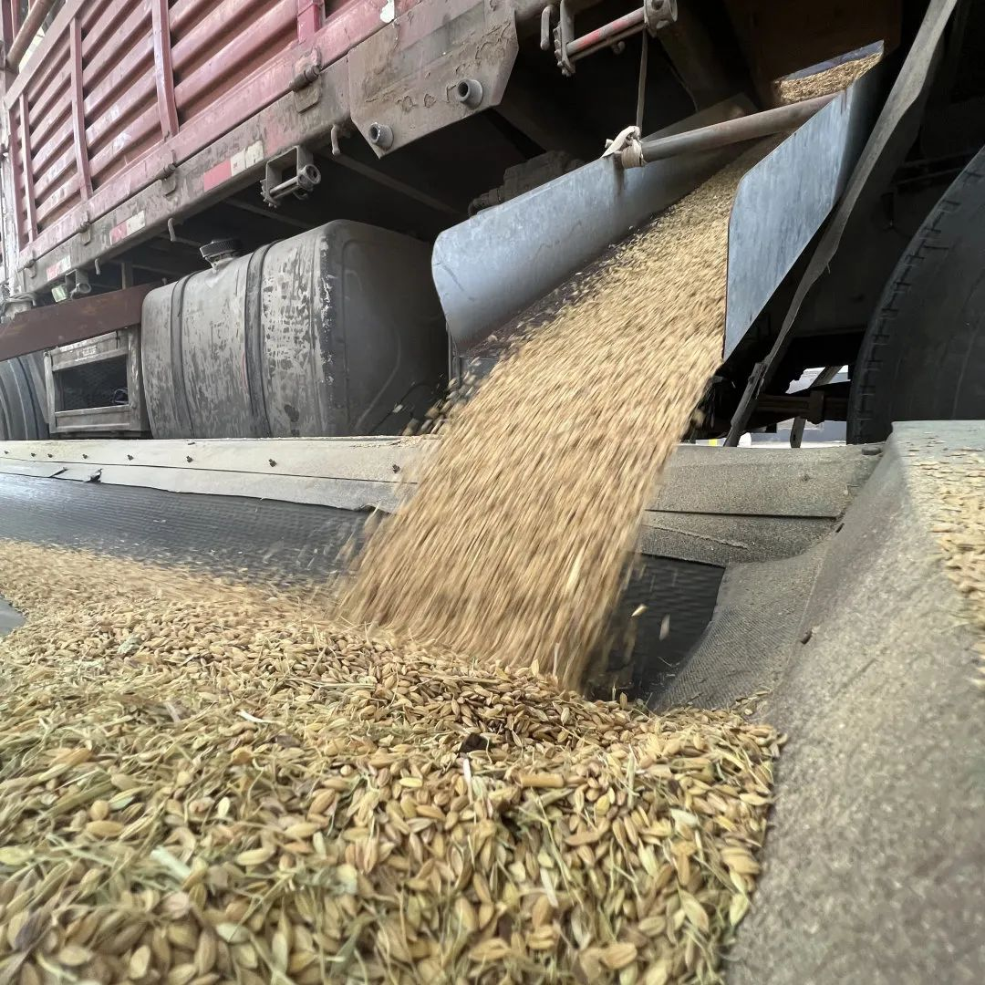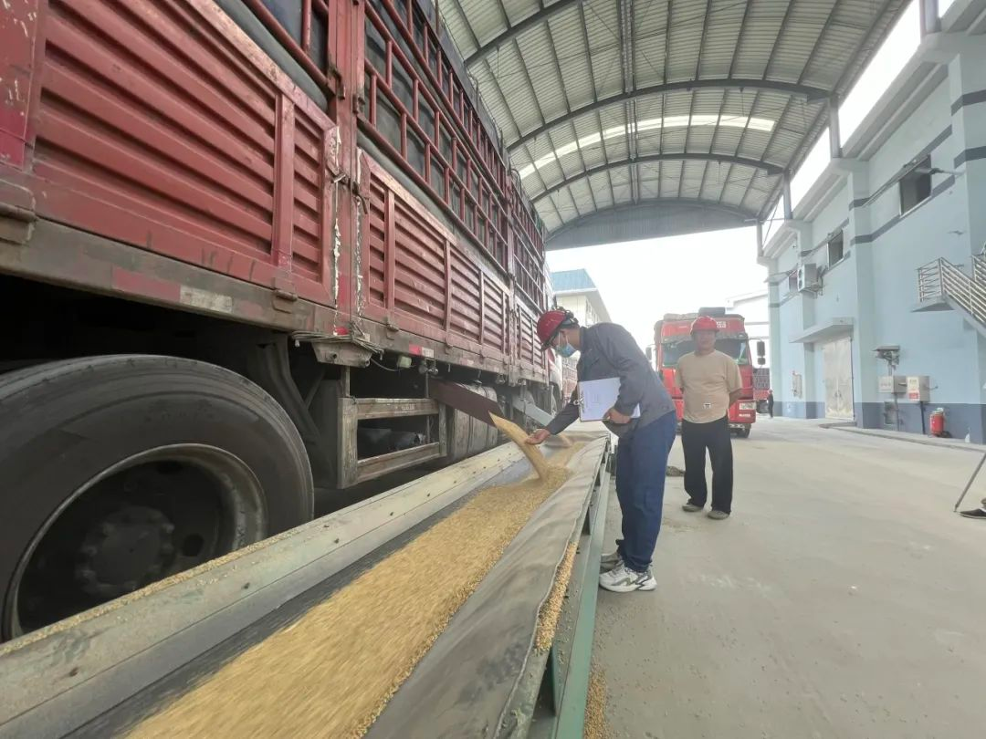 收购现场,一辆辆满载稻谷的货车早早停在粮库门口,有序排队。粮库内四处是扑鼻而来的稻谷香,一粒粒金黄色的稻谷如潮水般归入粮仓,农户们热情高涨,现场气氛忙碌又热烈。