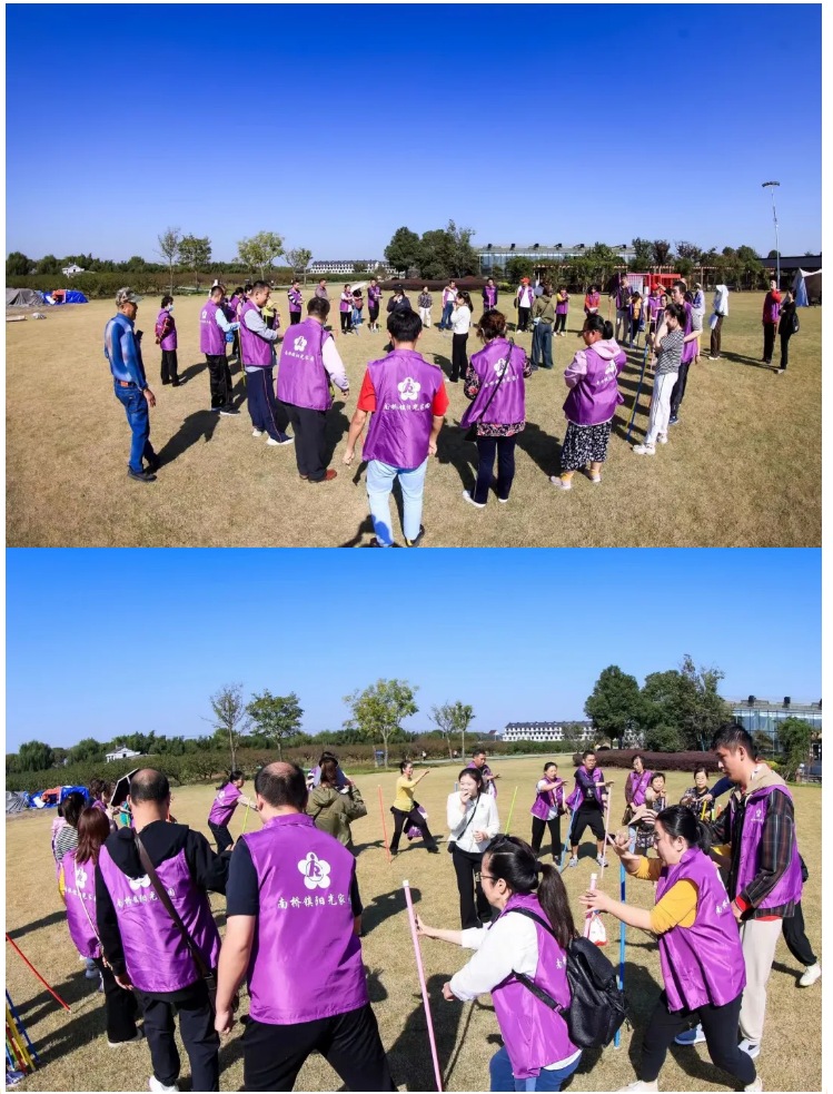 在不倒森林游戏中,学员们彼此协助,在杆不落下的情况下,以稳定、协调的步伐统一向指定方向移动,他们的每一个微笑,每一个动作,都充满了诚挚的欢乐。