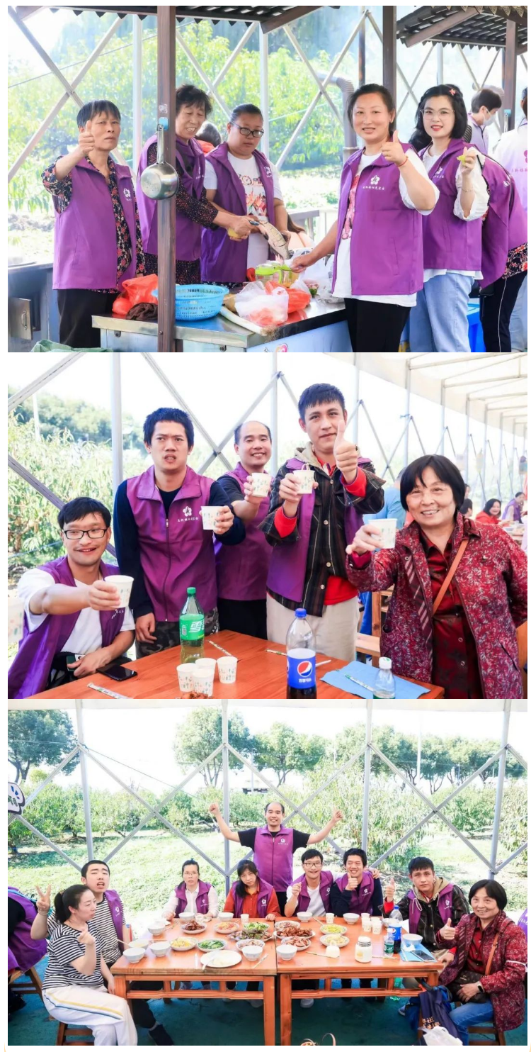 午饭时间,学员们在家长、助残员、志愿者的帮助下积极投入到制作午餐的过程中。不一会儿热气腾腾的午饭就出锅了,美食的香气逐渐弥漫开来。那久违的乡间土灶头的饭菜香气,是大家共同努力的成果,获得了满满的成就感。