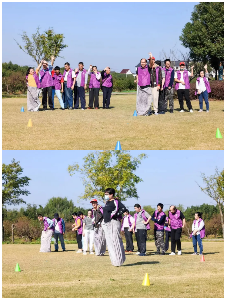 在水果公园的大草坪上,学员们玩起了趣味游戏。袋鼠跳游戏中,一只只“小袋鼠”双手提着袋子,铆足劲随着节奏向前跳动。虽然有时会有小小失误,但他们尽力调整,全神贯注投入到游戏中,朝着终点奋勇直追。