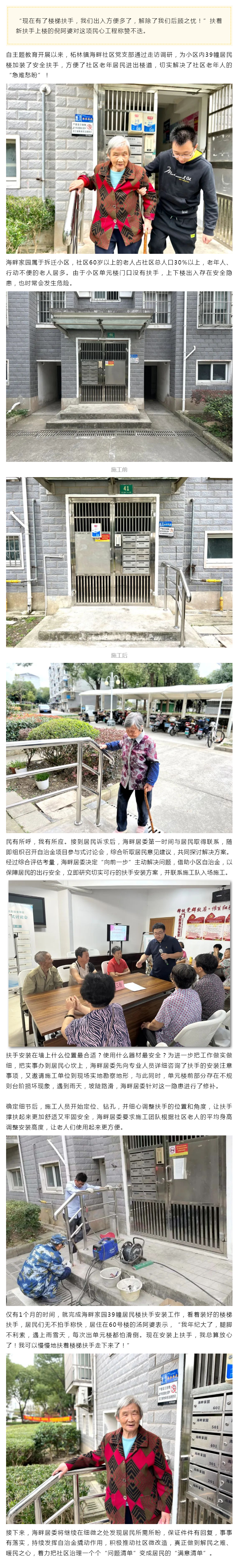 “有了这个扶手安心多了!”柘林这个社区一举动获居民点赞