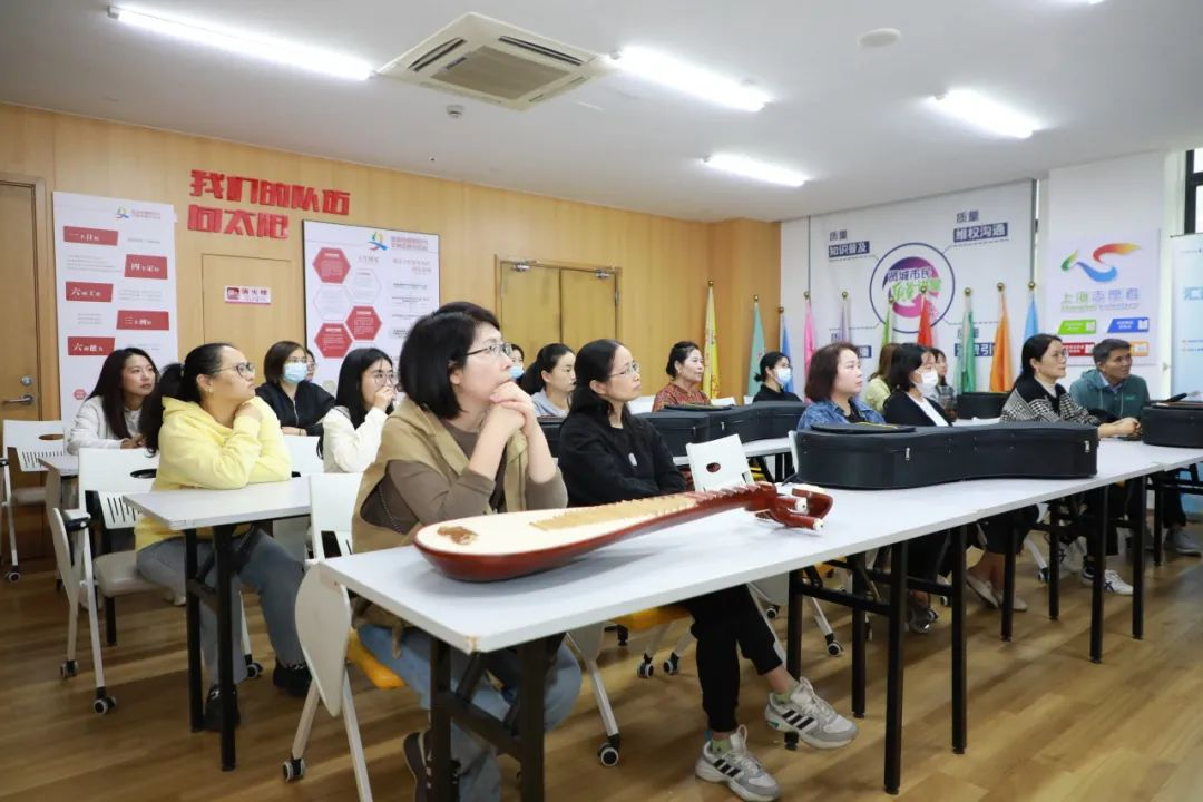 袅袅音韵,不绝于耳,正在开展的是金海街道新时代文明实践特色艺术公益课之“民乐琵琶”,固定每周三下午上课,1学期共24课时,目前已经是第二个课时,也是继理论课之后的第一节实操课。