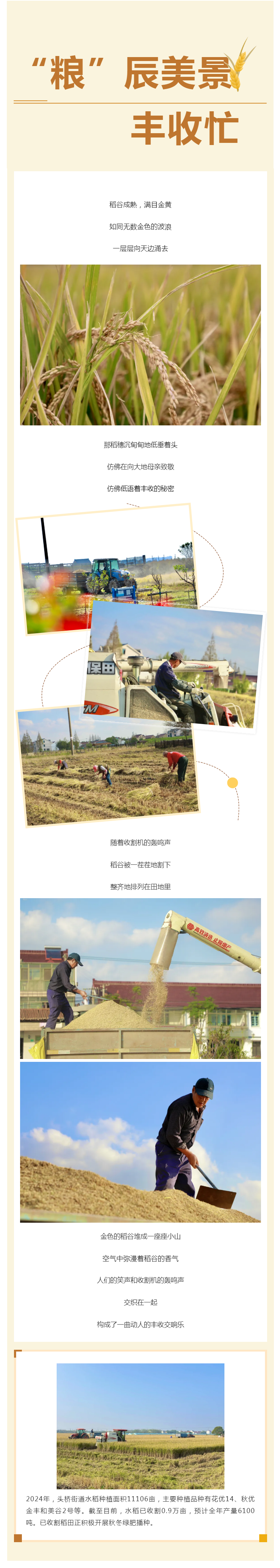 “粮”辰美景!头桥街道1.1万亩水稻喜迎丰收