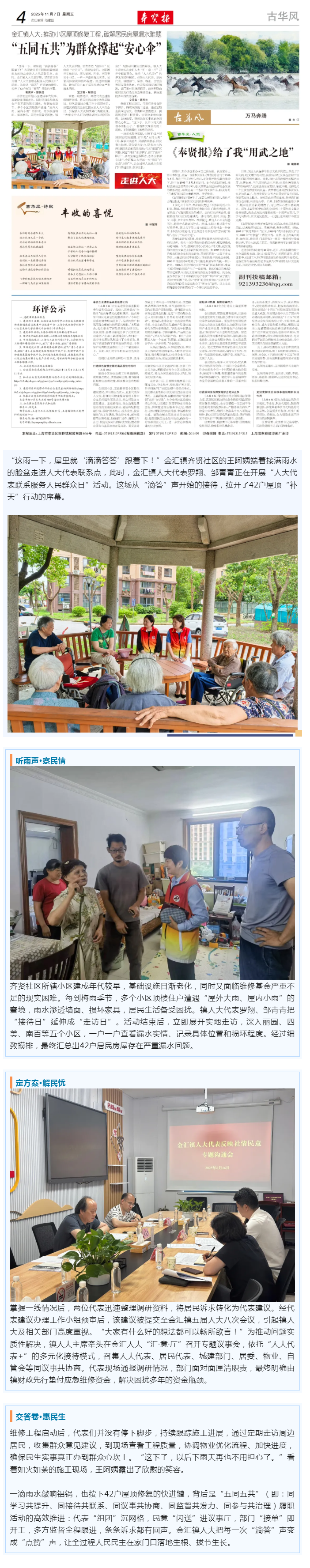 金汇镇人大:推动小区屋顶修复工程,破解居民房屋漏水难题