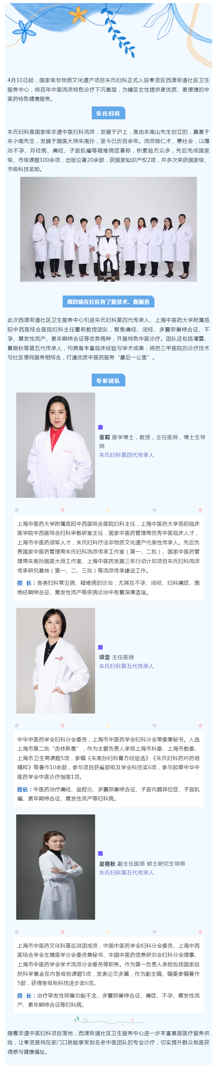 国家级非遗朱氏妇科入驻奉贤西渡!居民家门口享优质中医妇科服务