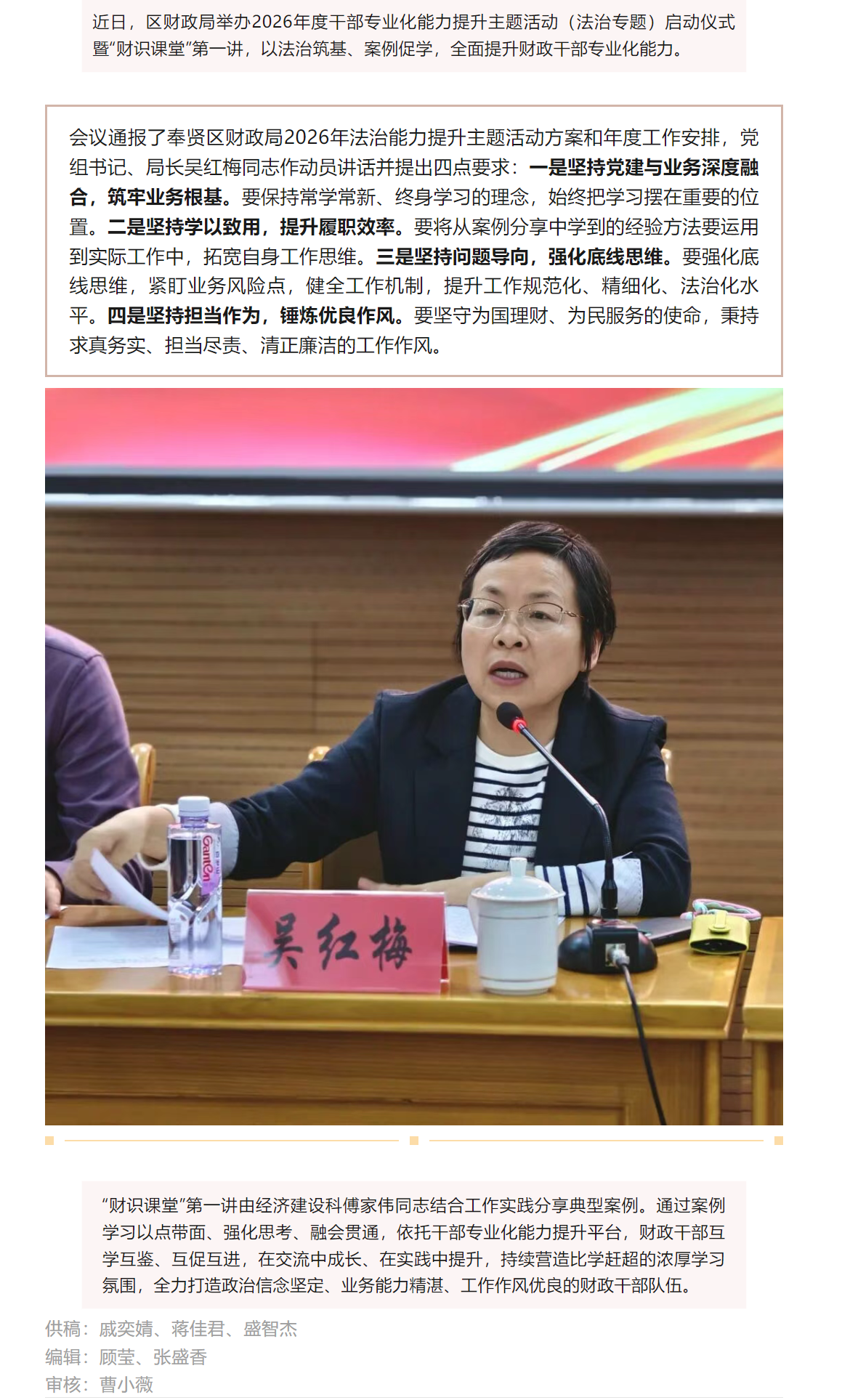 党建铸魂强法治 业务赋能提质效——区财政局启动2026年度干部专业化能力提升主题活动