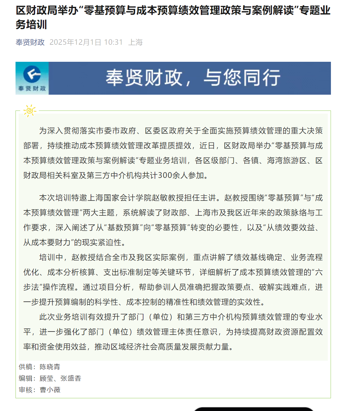 区财政局举办“零基预算与成本预算绩效管理政策与案例解读”专题业务培训