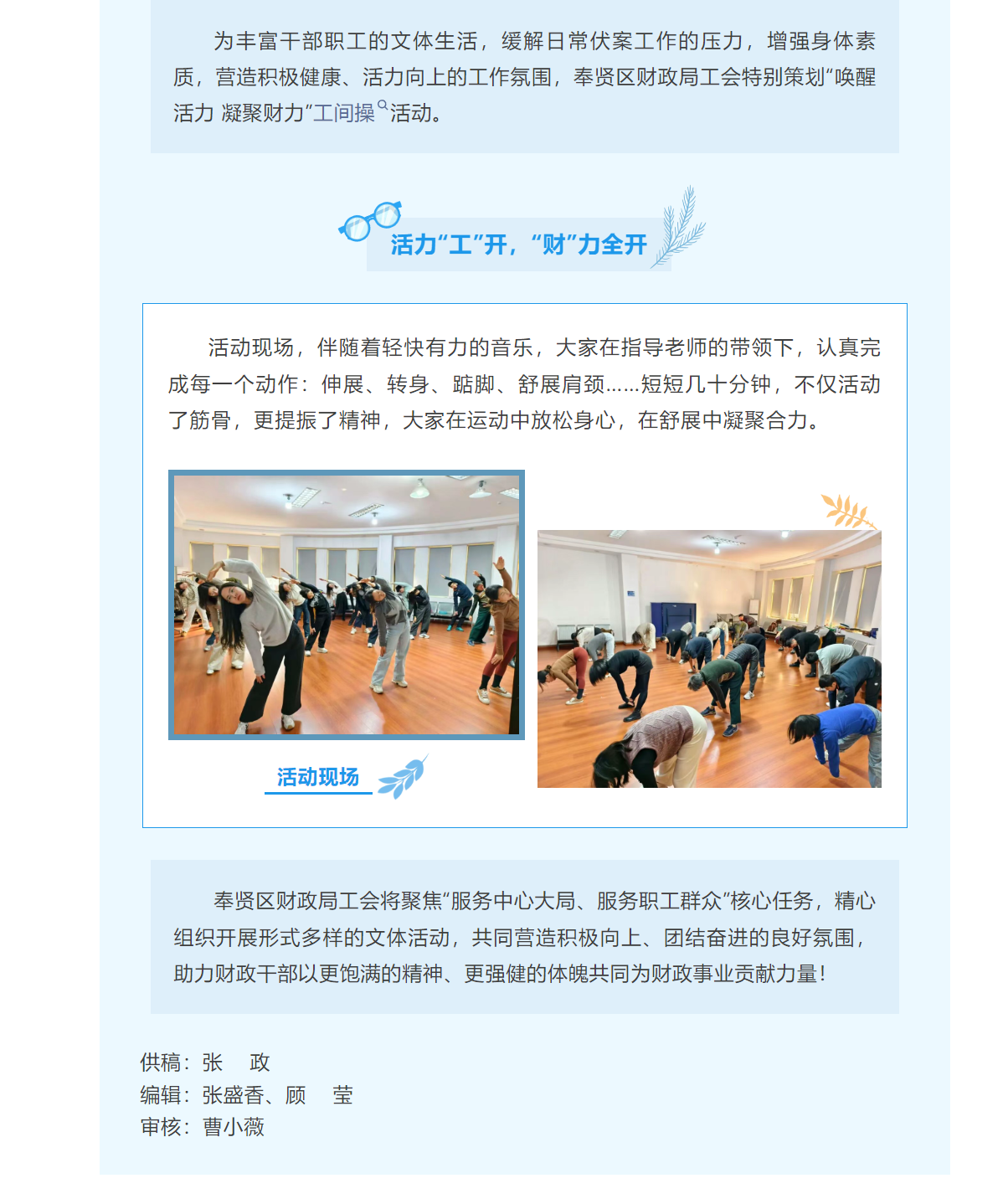 奉贤区财政局工会举办“唤醒活力 凝聚财力”工间操活动