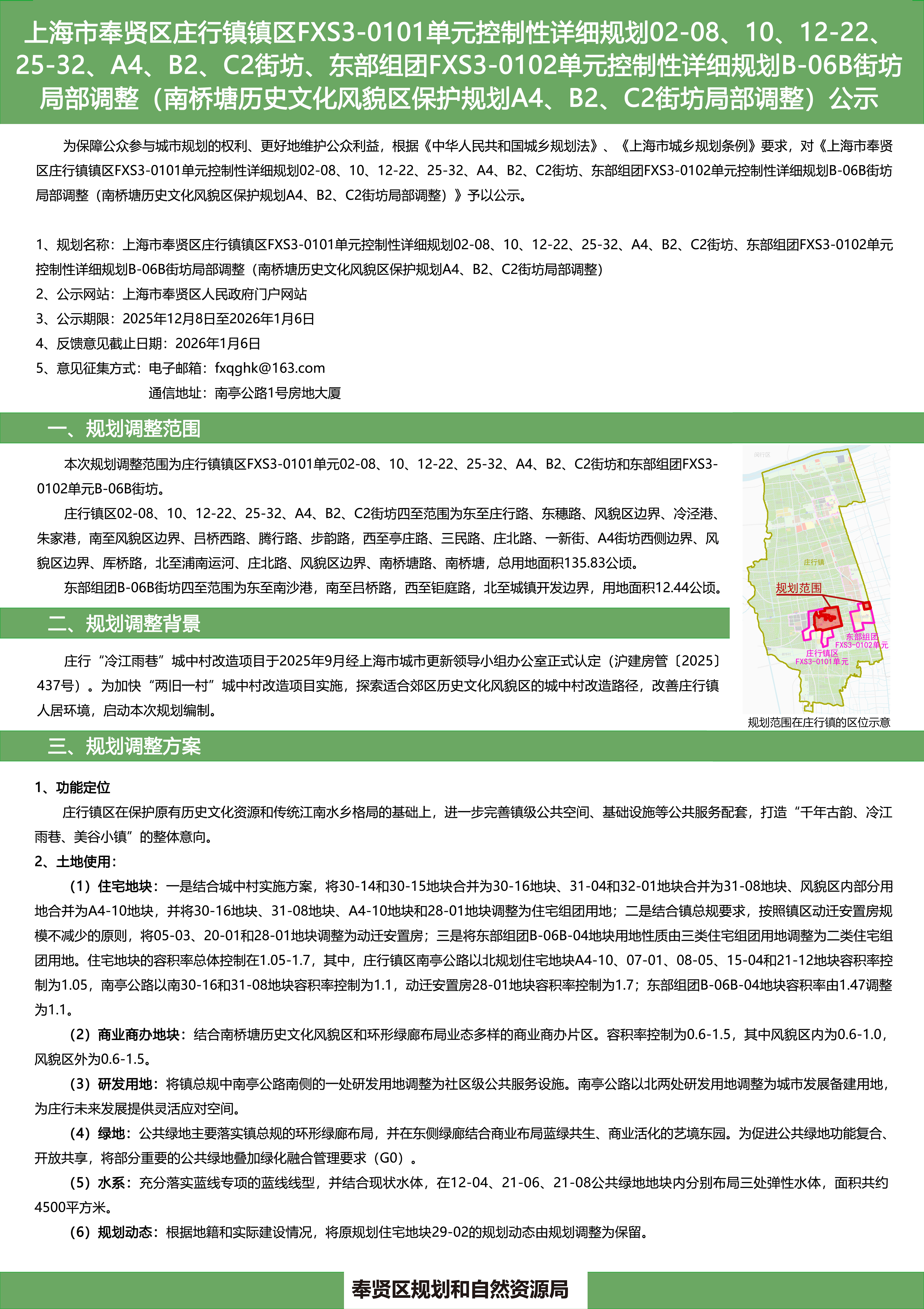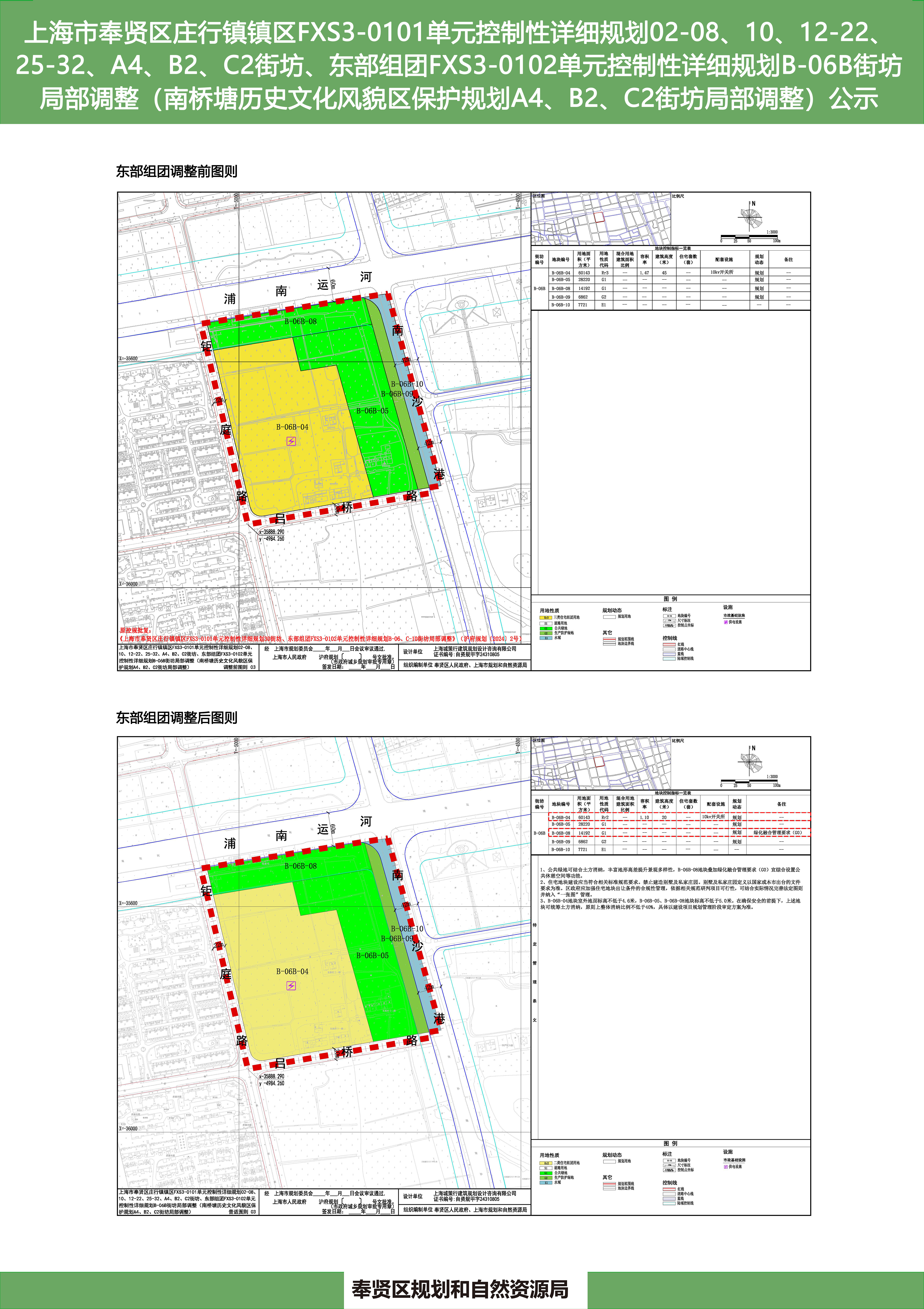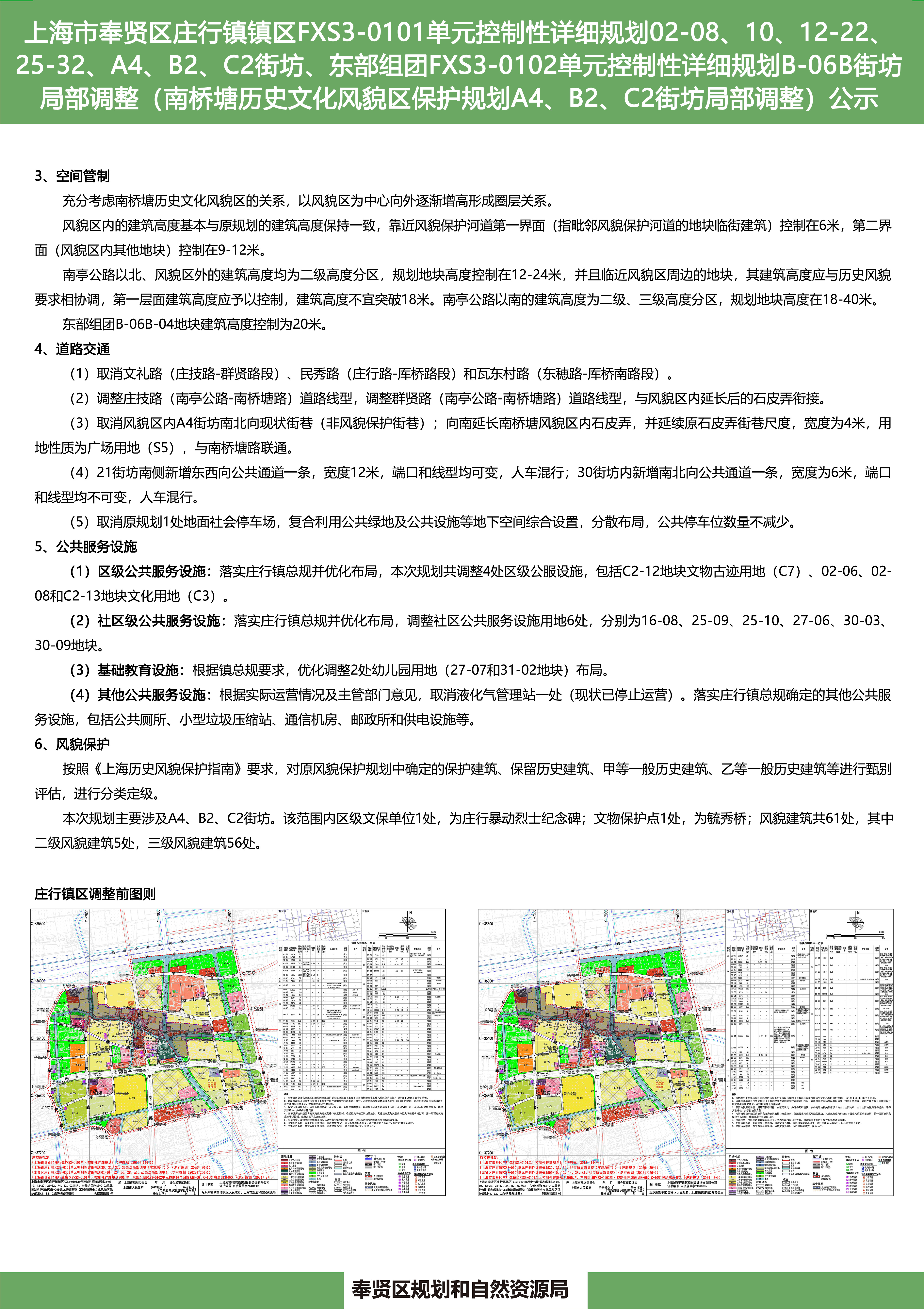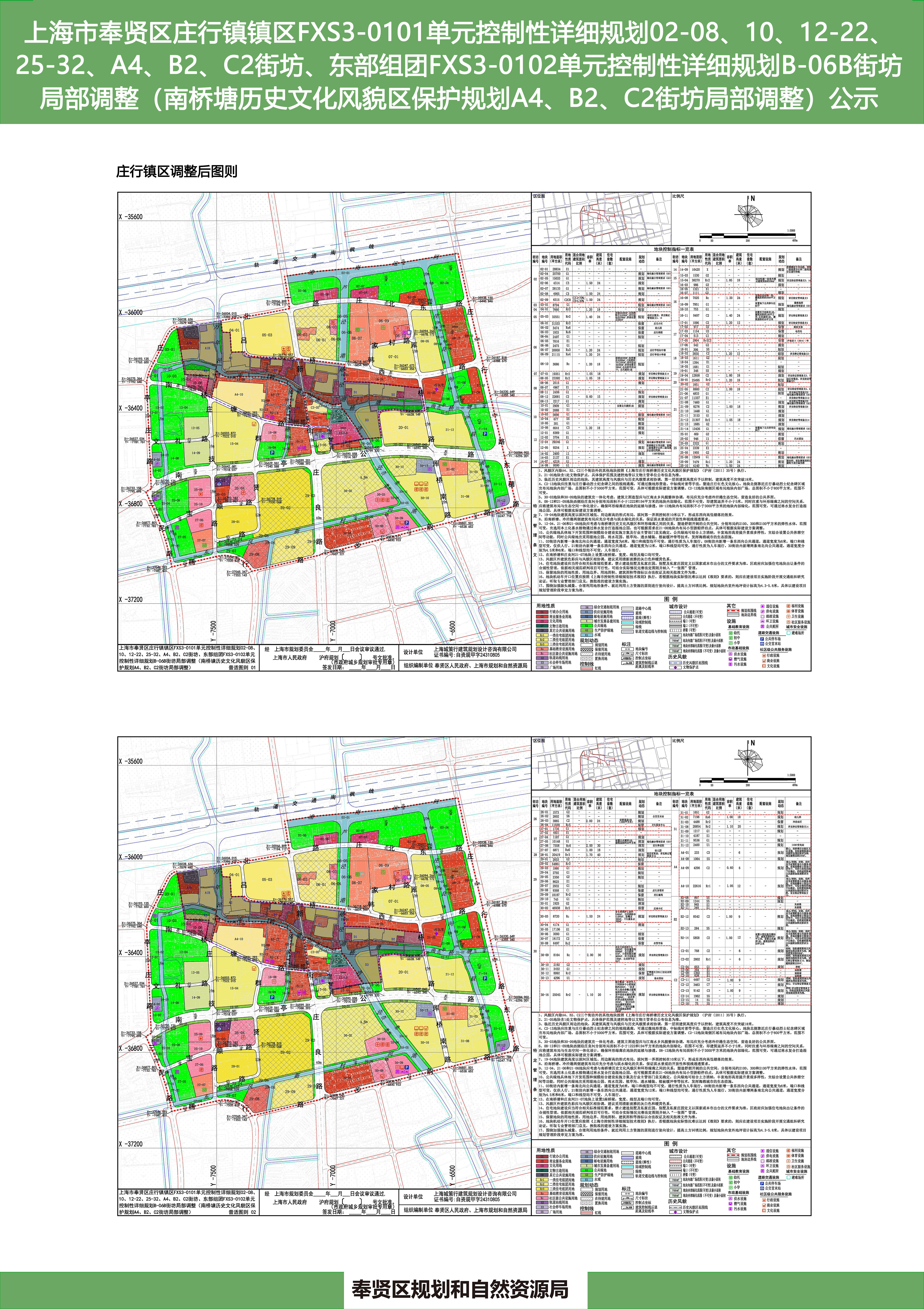上海市奉贤区庄行镇镇区FXS3-0101单元控制性详细规划02-08、10、12-22、25-32、A4、B2、C2街坊、东部组团FXS3-0102单元控制性详细规划B-06B街坊局部调整(南桥塘历史文化风貌区保护规划A4、B2、C2街坊局部调整)公示