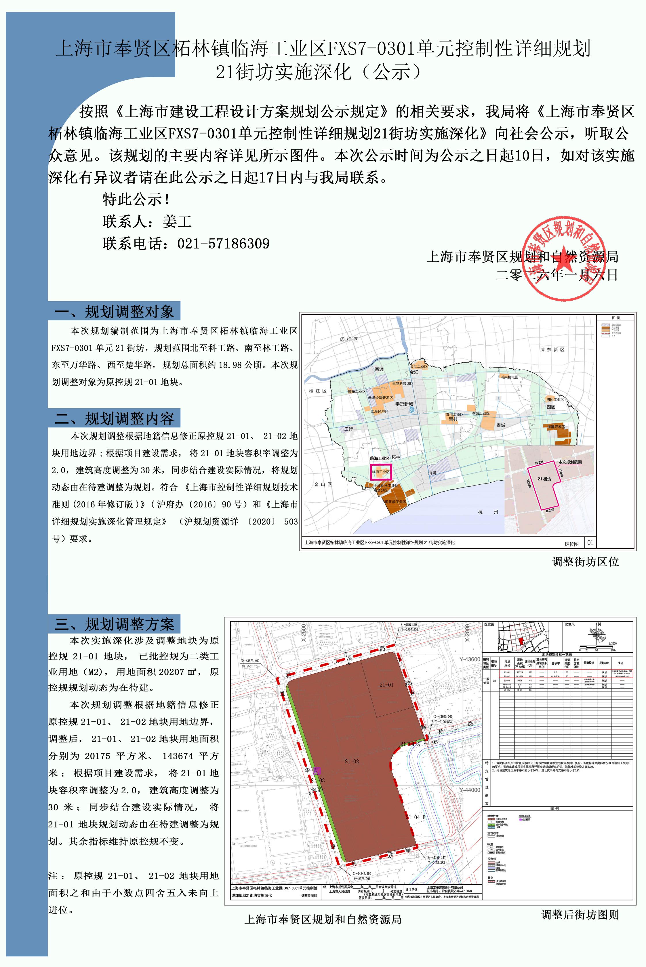 上海市奉贤区柘林镇临海工业区FXS7-0301单元控制性详细规划21街坊实施深化(公示)