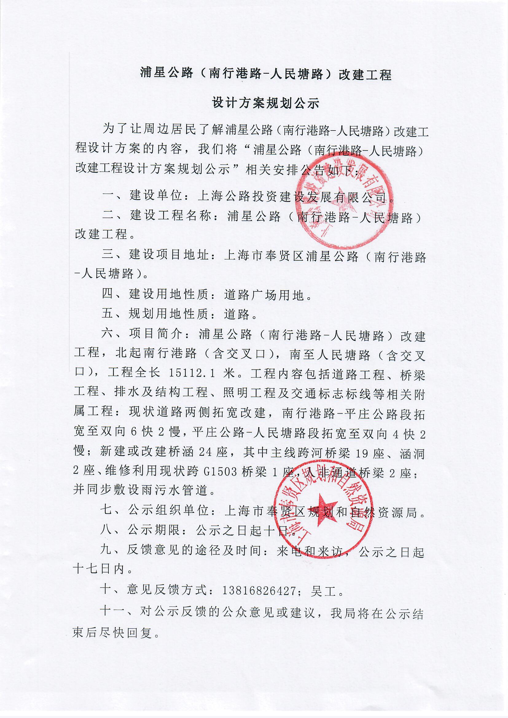 浦星公路(南行港路~人民塘路)改建工程