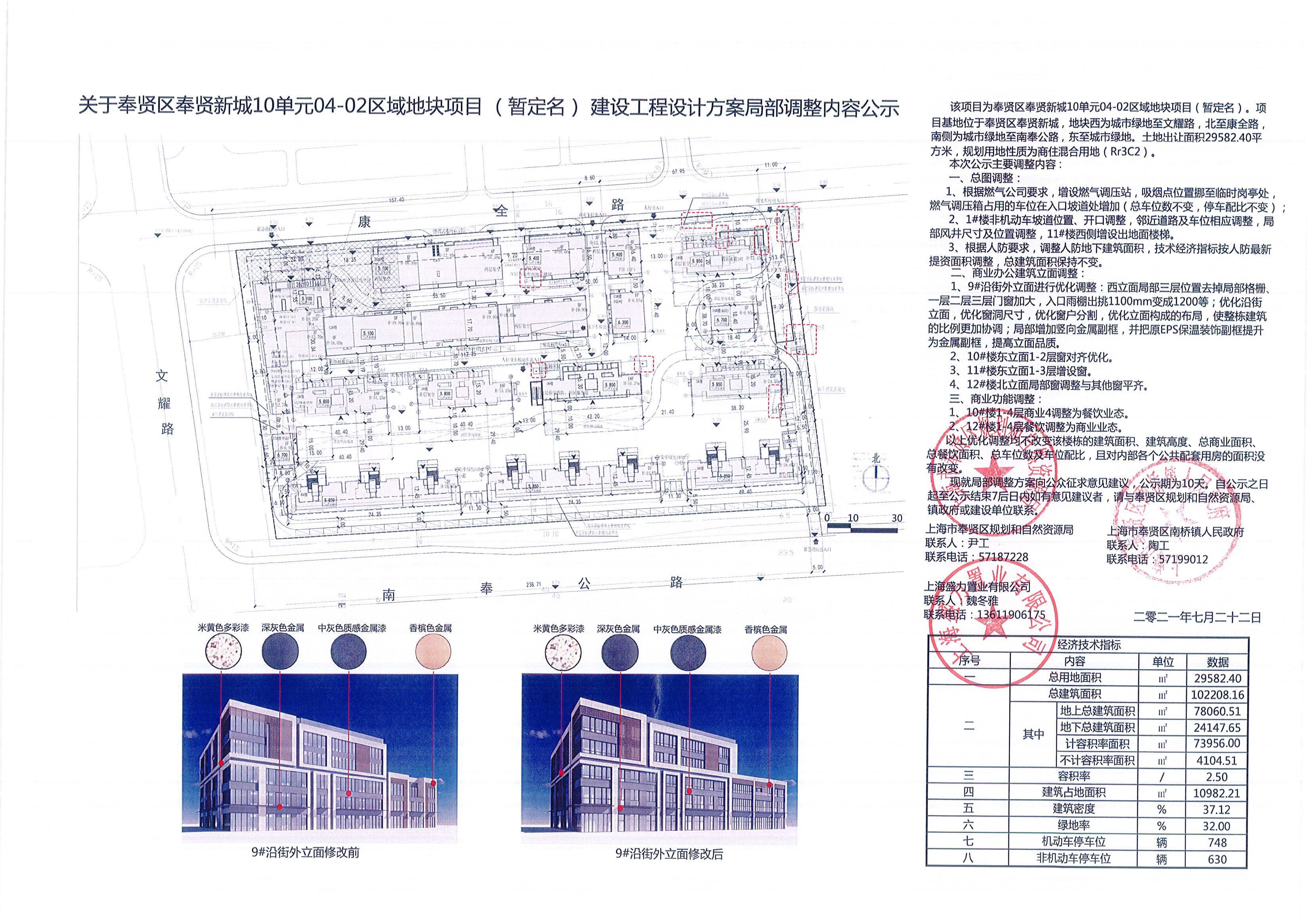 关于奉贤区奉贤新城10单元04-02区域地块项目(暂定名)建设工程设计方案局部调整内容公示