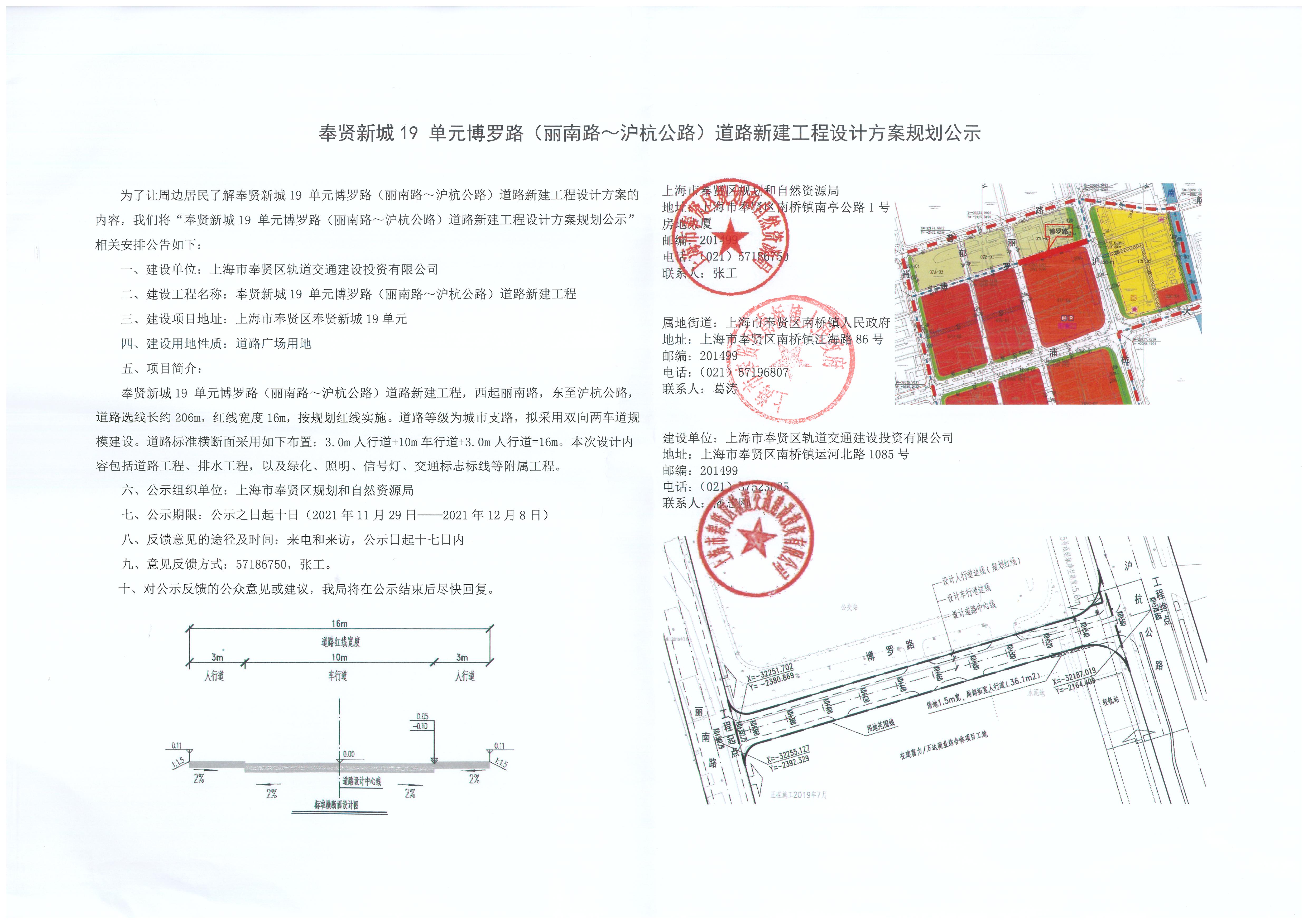 奉贤新城19 单元博罗路(丽南路~沪杭公路)道路新建工程设计方案公示