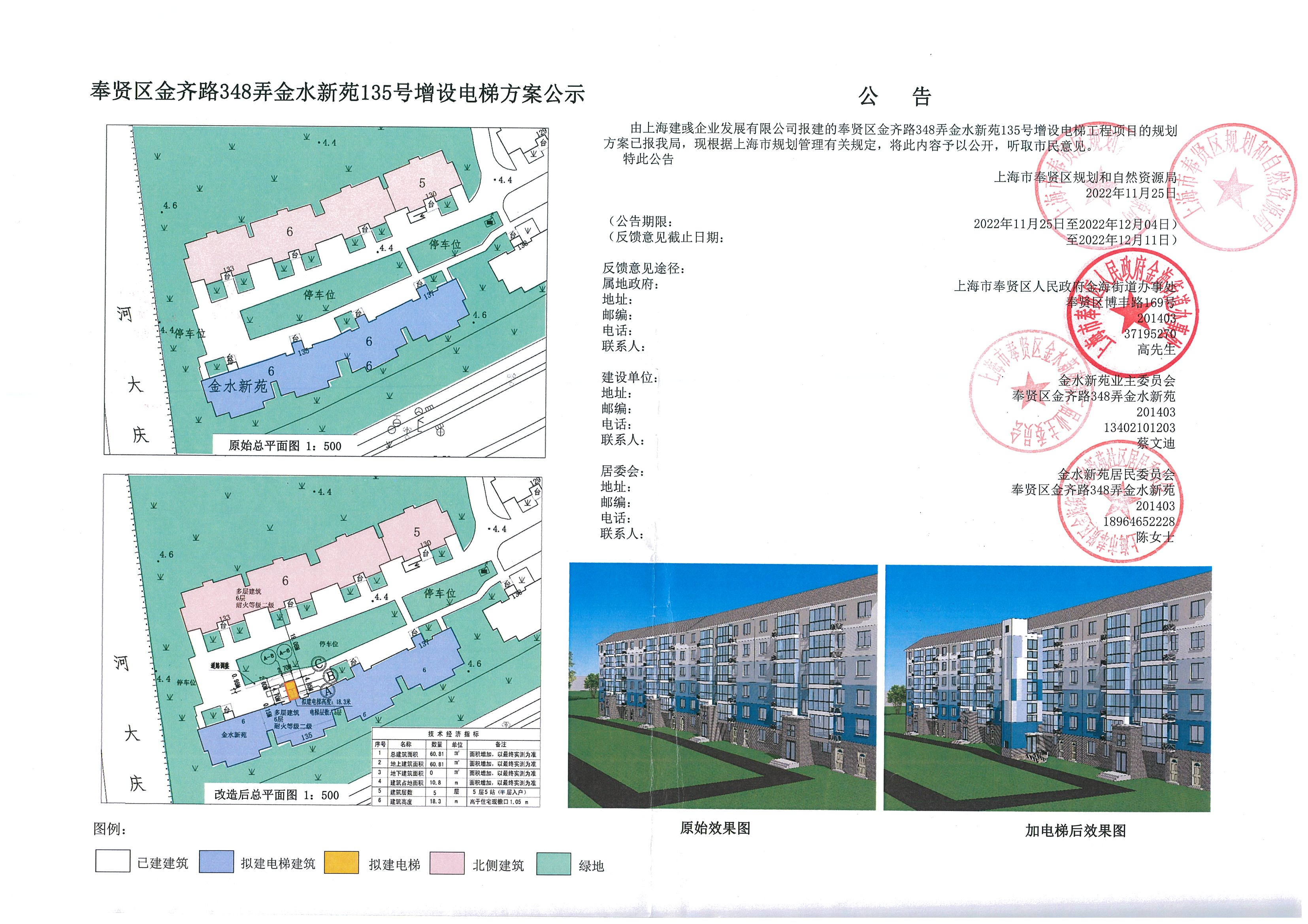 奉贤区金齐路348弄金水新苑135号增设电梯方案公示