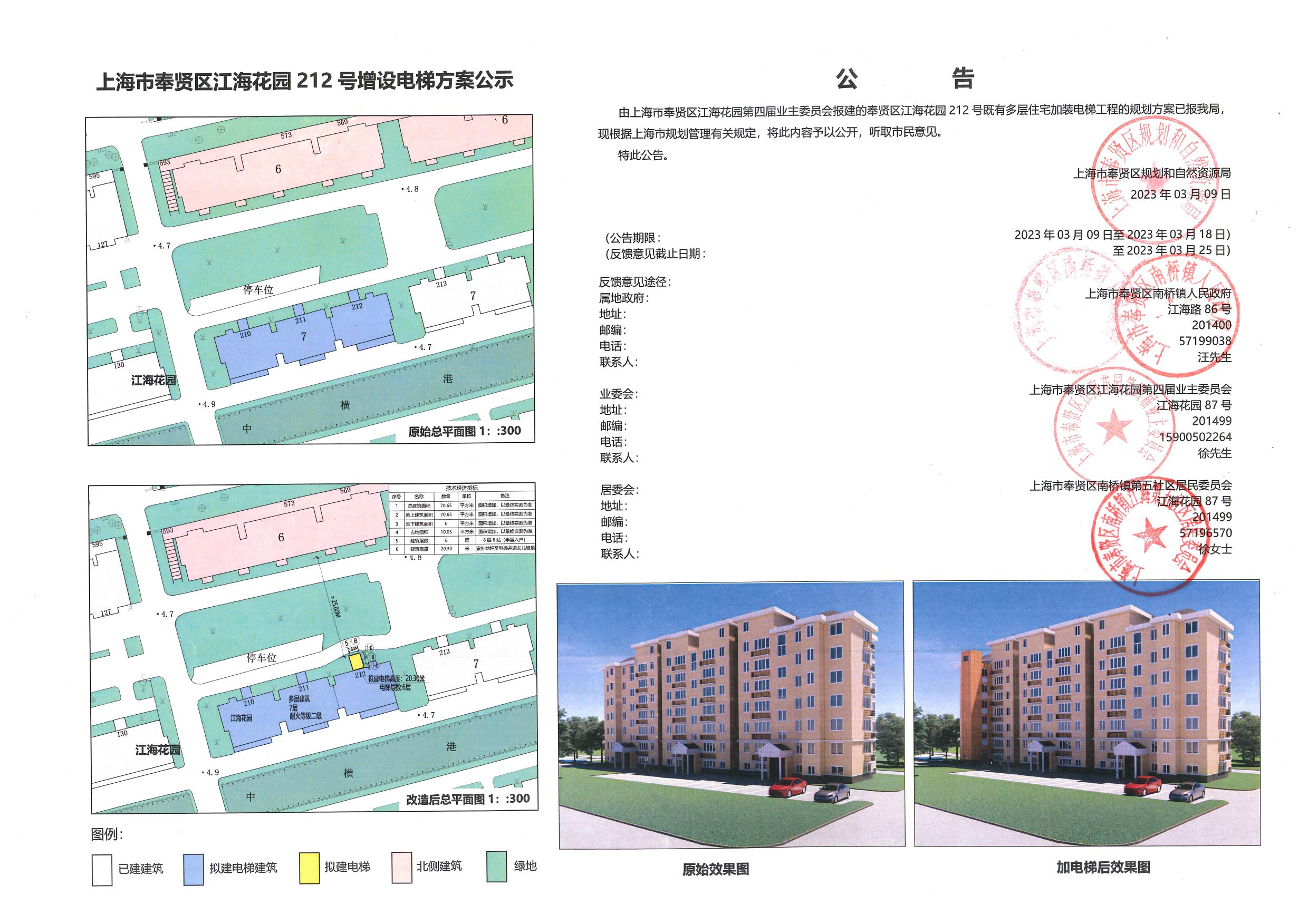 上海市奉贤区江海花园212号增设电梯方案公示
