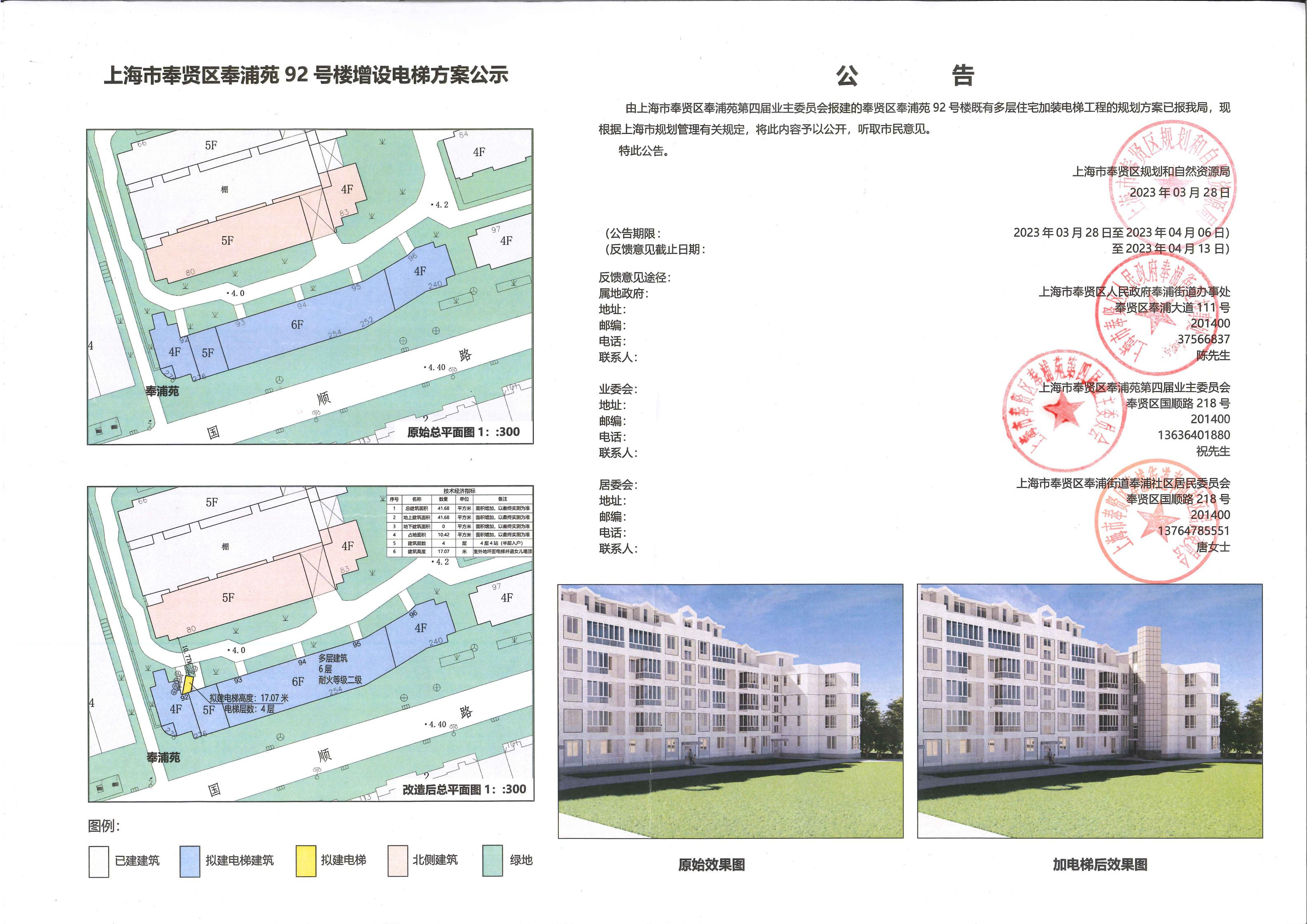 上海市奉贤区奉浦苑92号楼增设电梯方案公示