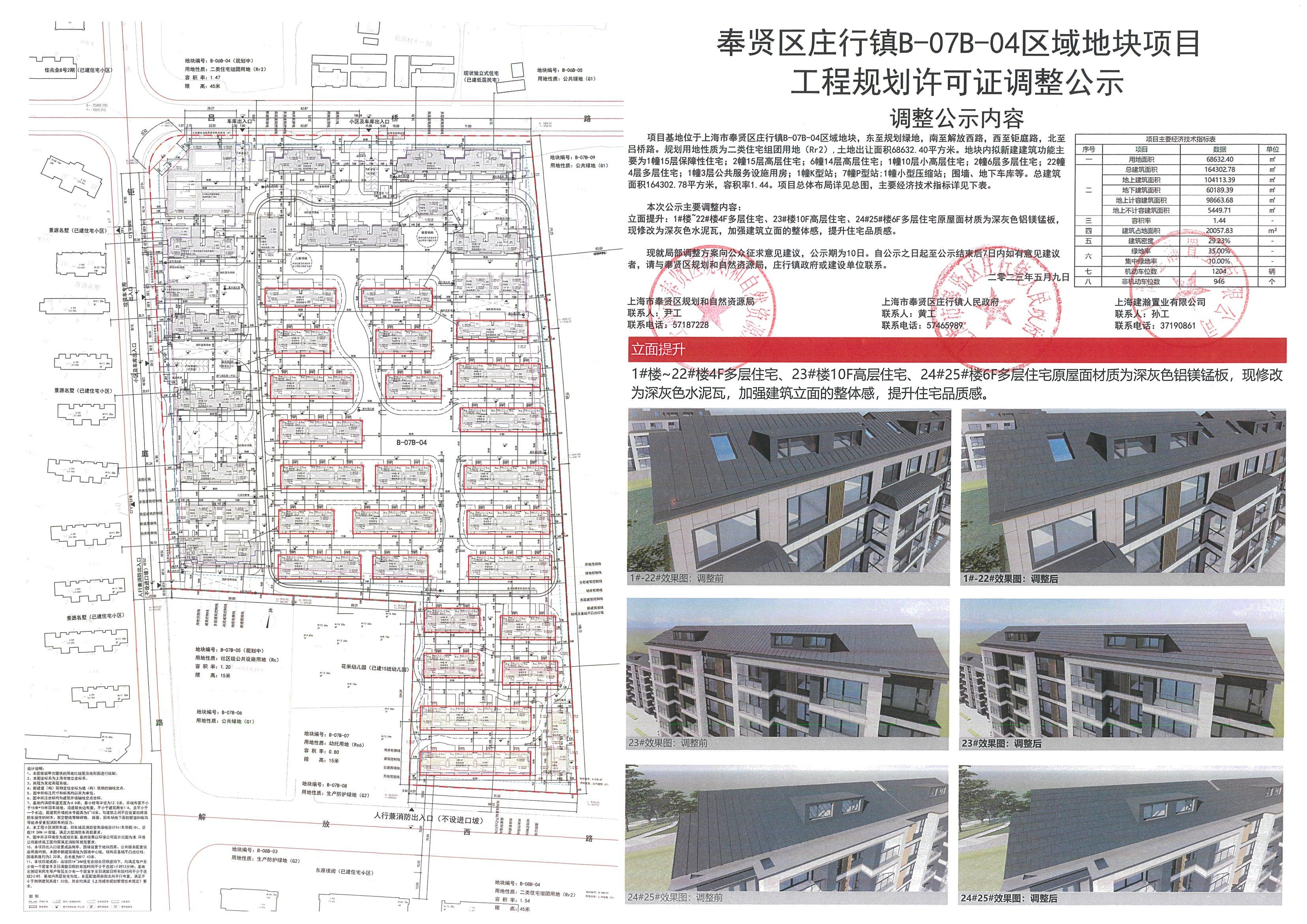 奉贤区庄行镇B-07B-0区域地块项目建设工程规划许可证调整公示