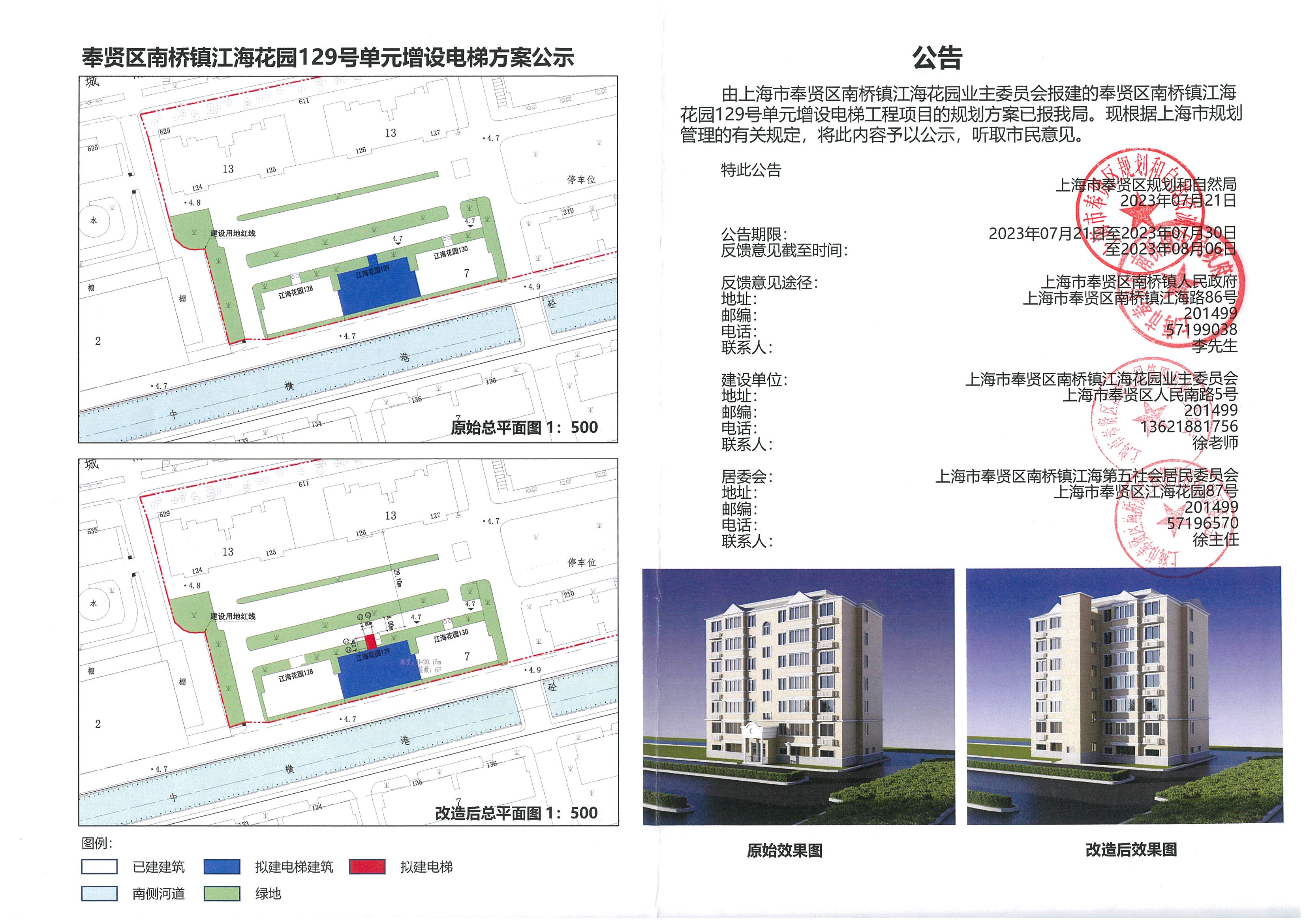 奉贤区南桥镇江海花园129号单元增设电梯方案公示