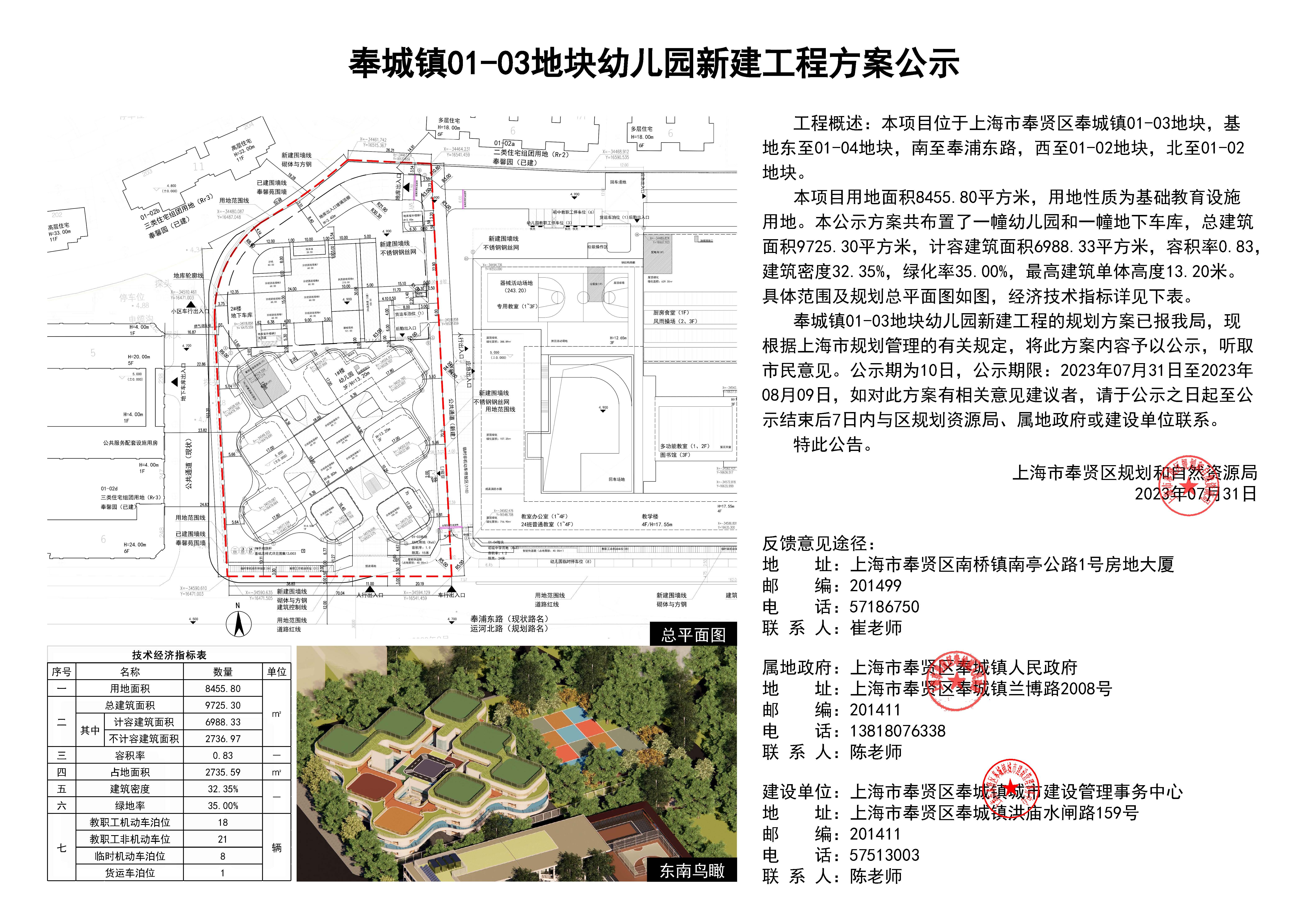 奉城镇01-03地块幼儿园(暂定名)新建工程项目设计方案公示