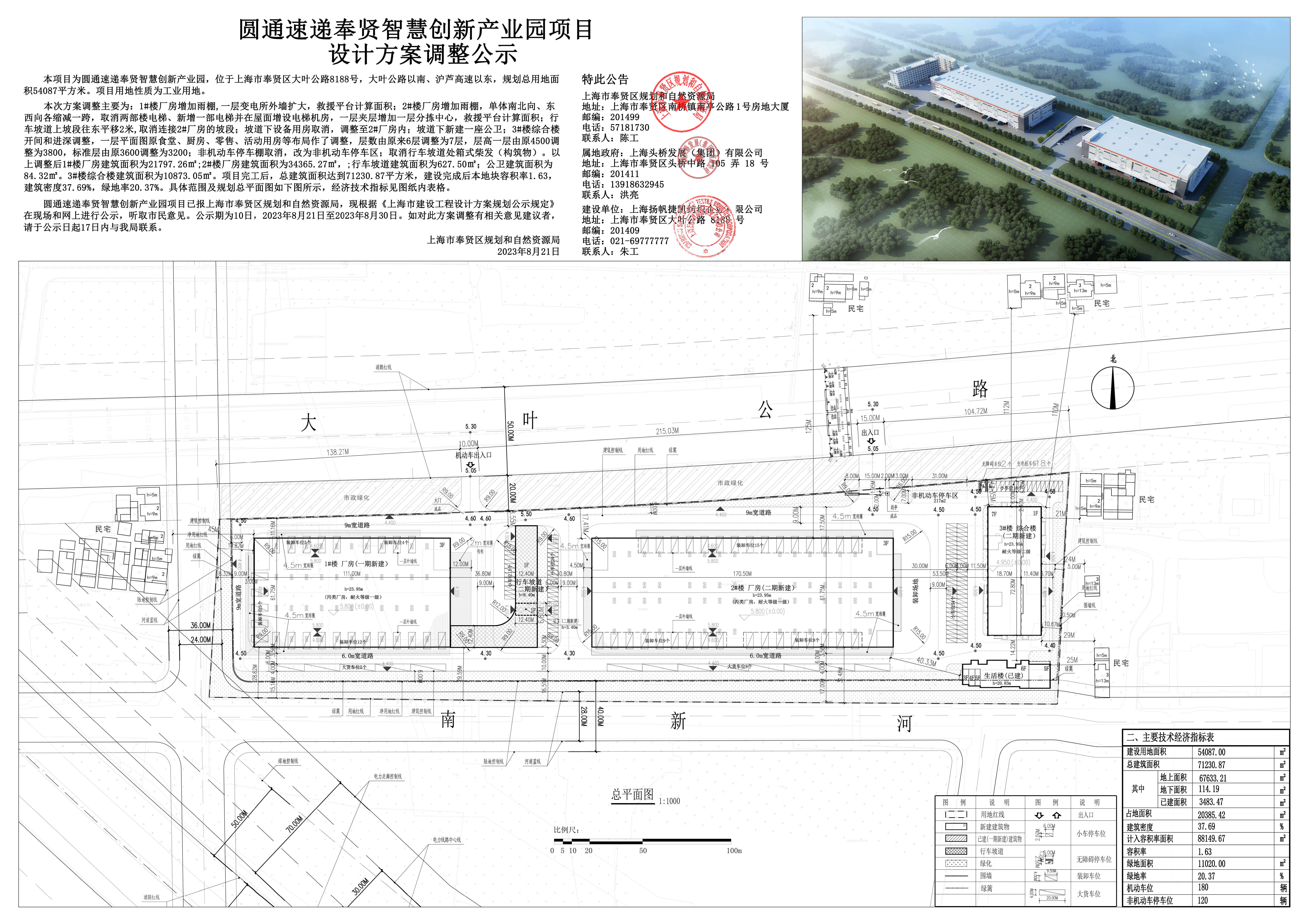 圆通速递奉贤智慧创新产业园区项目设计方案调整公示