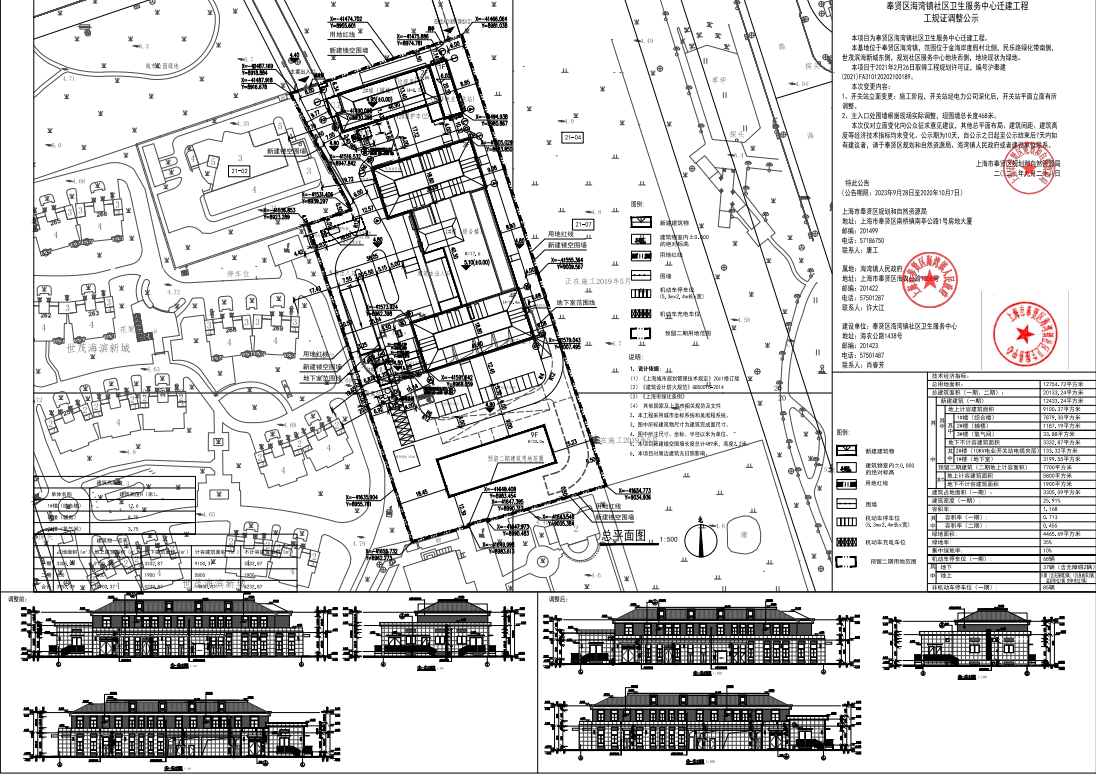 奉贤区海湾镇社区卫生服务中心迁建工程工规证变更公示