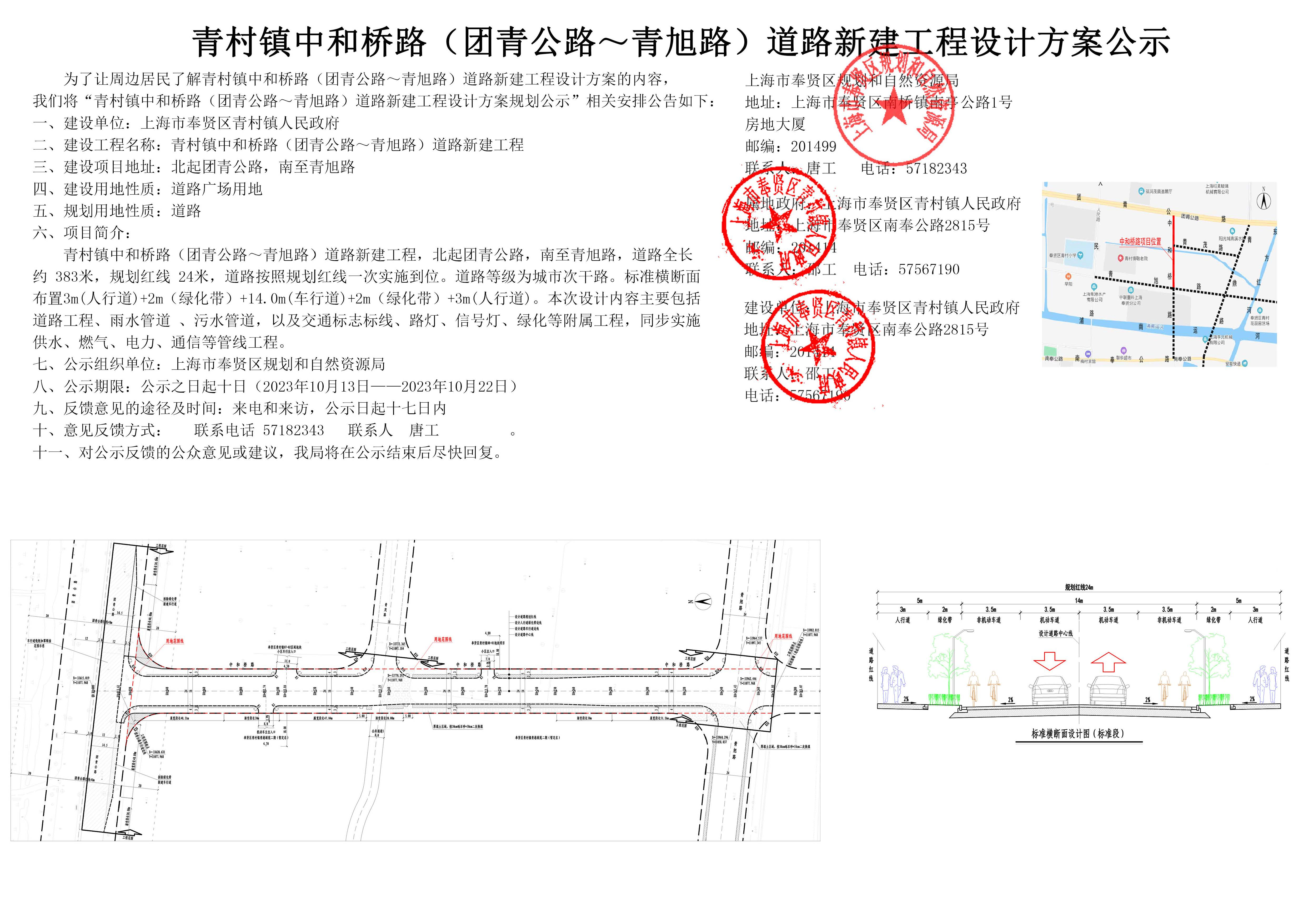 青村镇中和桥路(团青公路~青旭路)道路新建工程设计方案公示