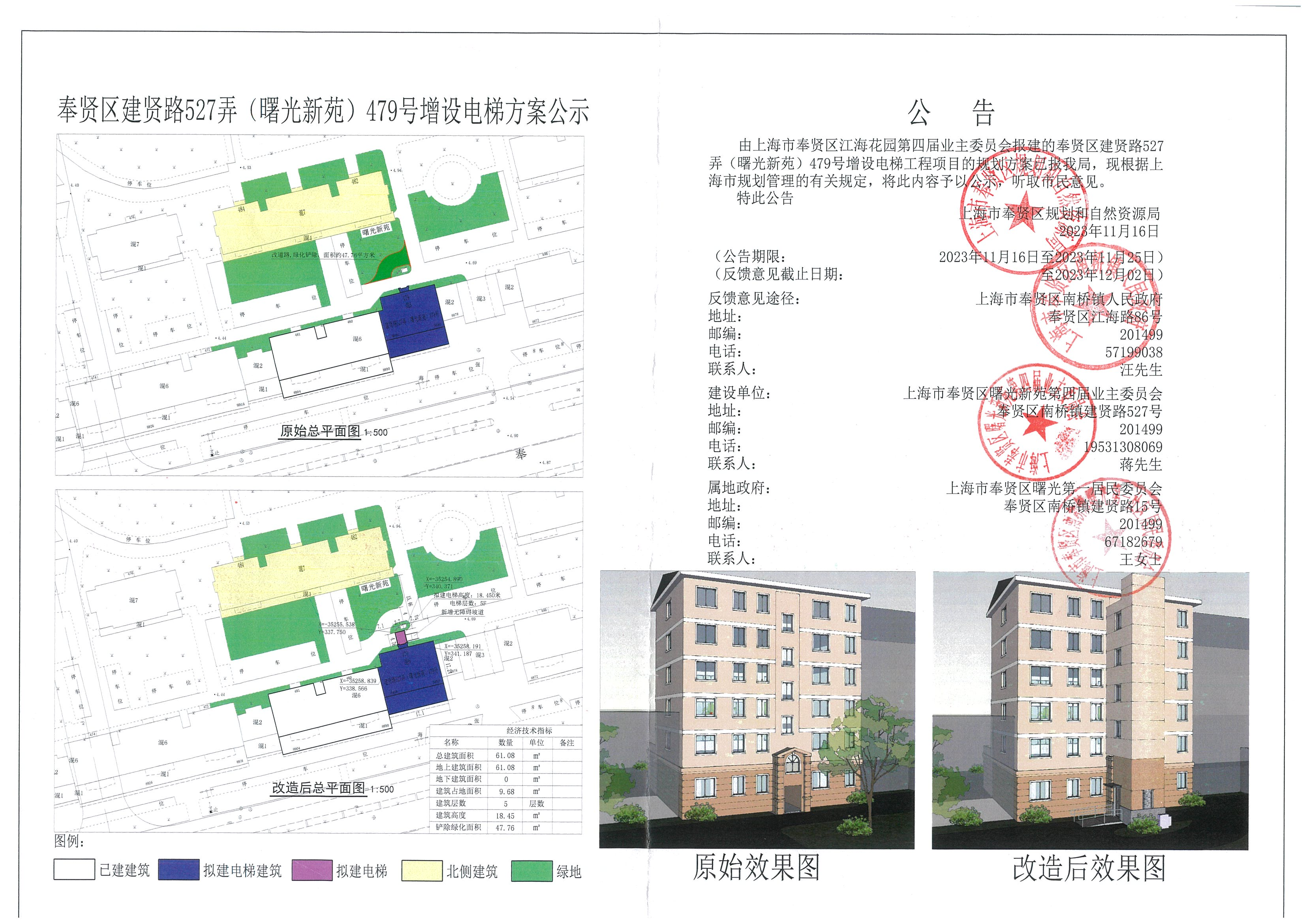 奉贤区建贤路527弄(曙光新苑)479号增设电梯方案公示