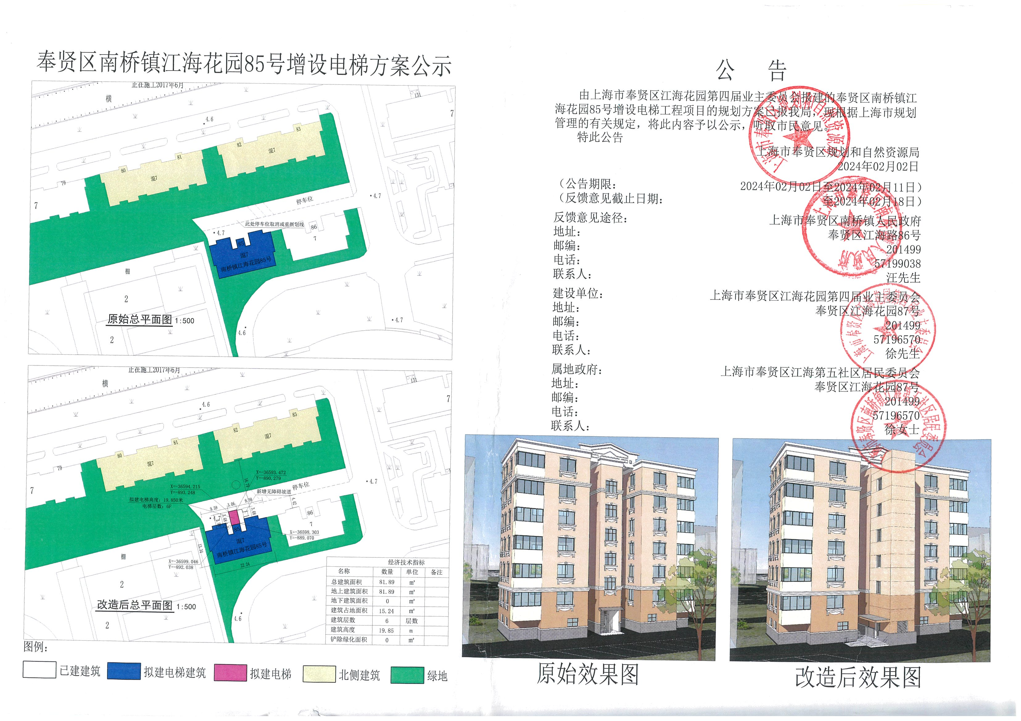奉贤区南桥镇江海花园85号增设电梯方案公示
