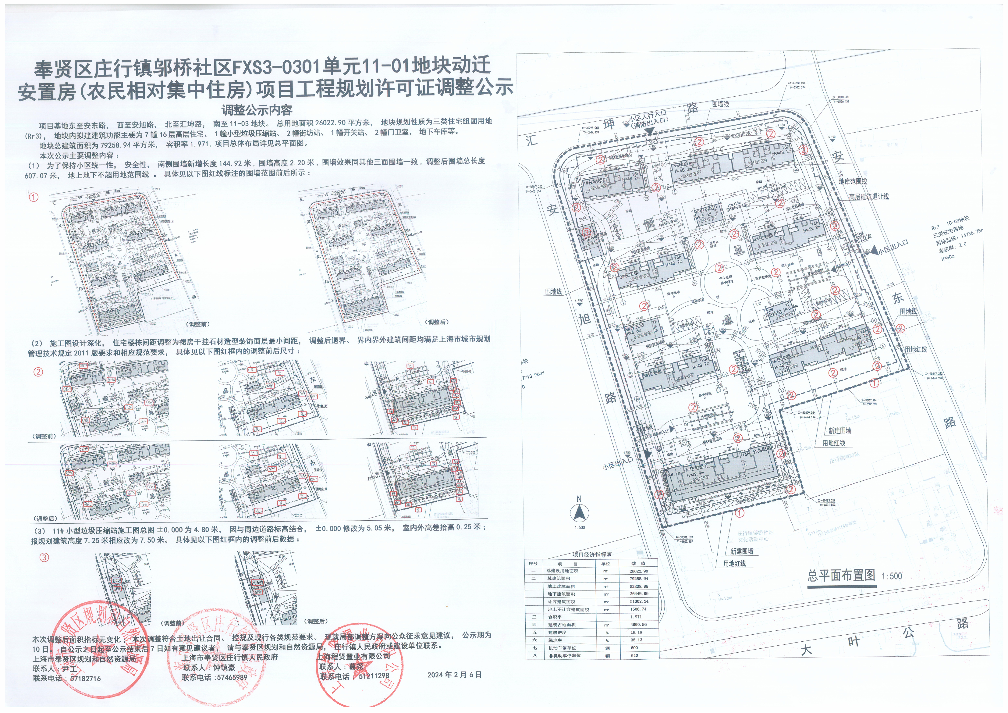 奉贤区庄行镇邬桥社区FXS3-0301单元11-01地块动迁安置房(农民相对集中住房)项目工程规划许可证调整公示