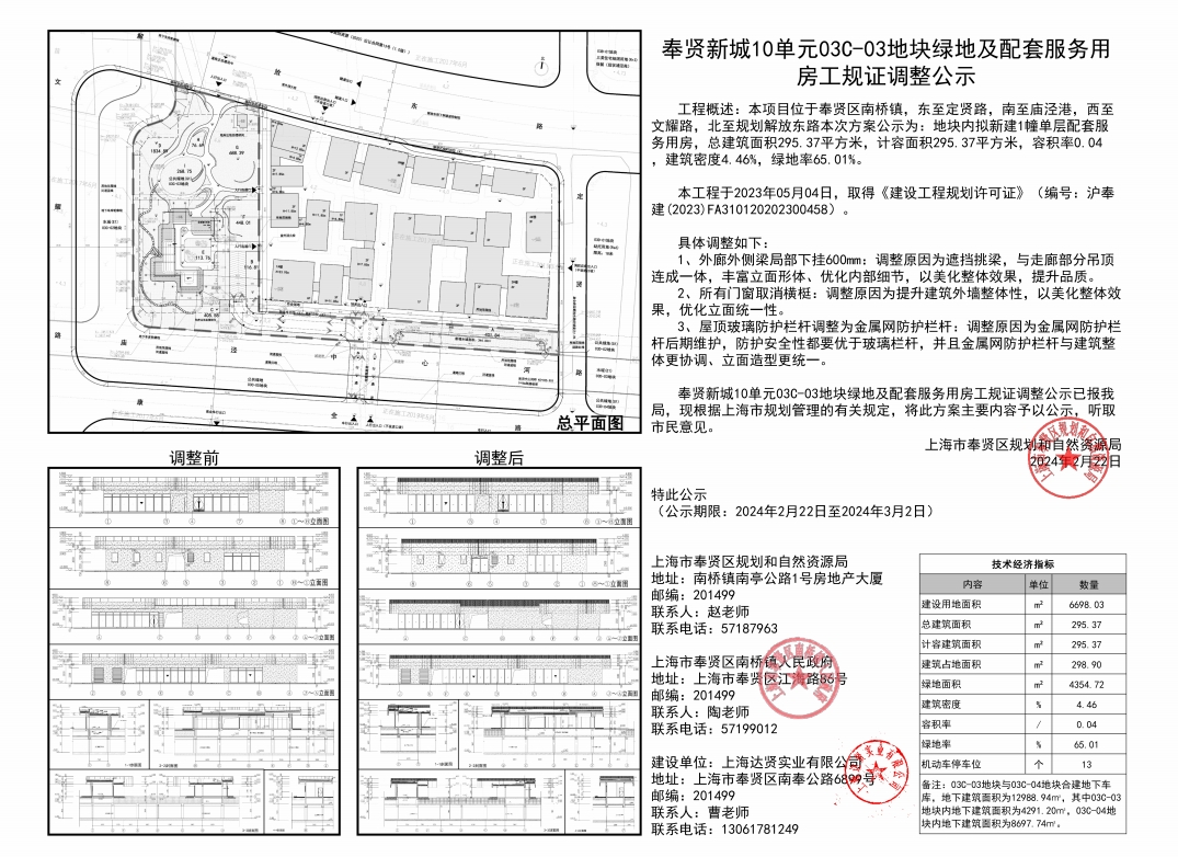奉贤新城10单元03C-03地块绿地及配套服务用房工规证调整公示