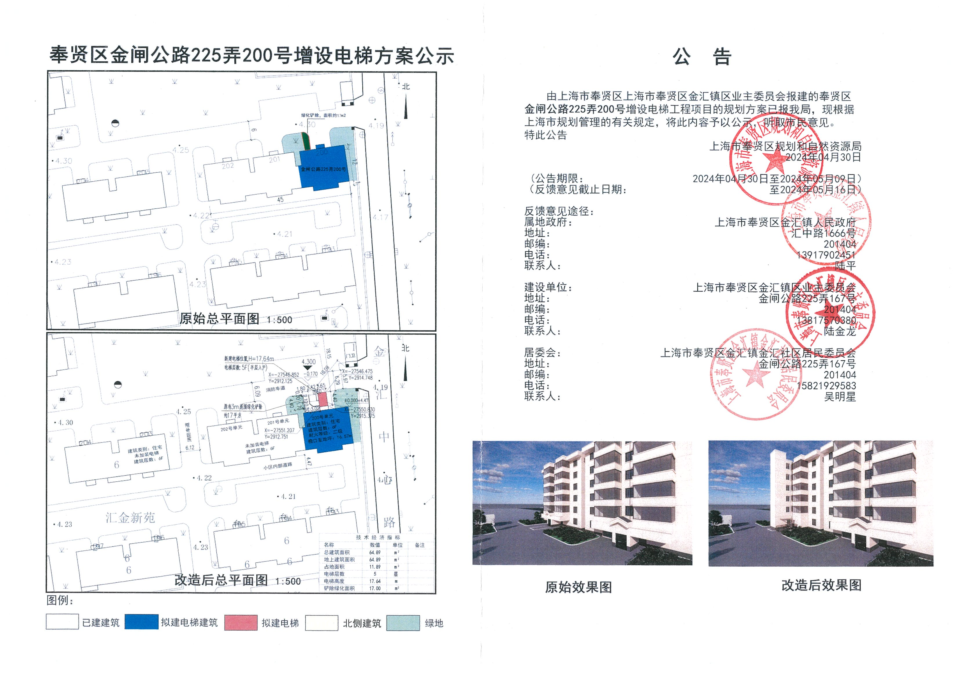 奉贤区金闸公路225弄200号增设电梯方案公示