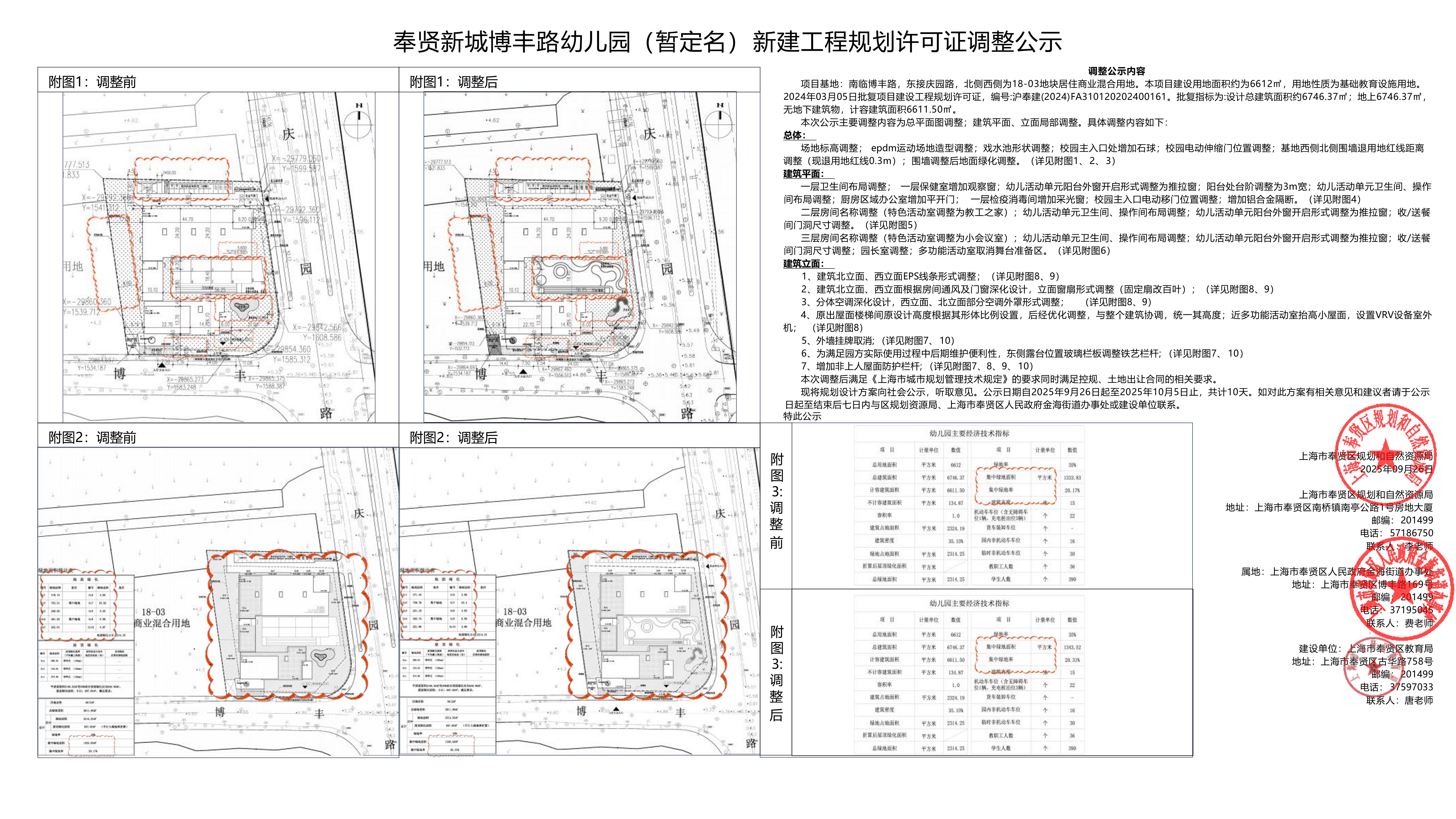 奉贤新城博丰路幼儿园(暂定名)新建工程规划许可证调整公示