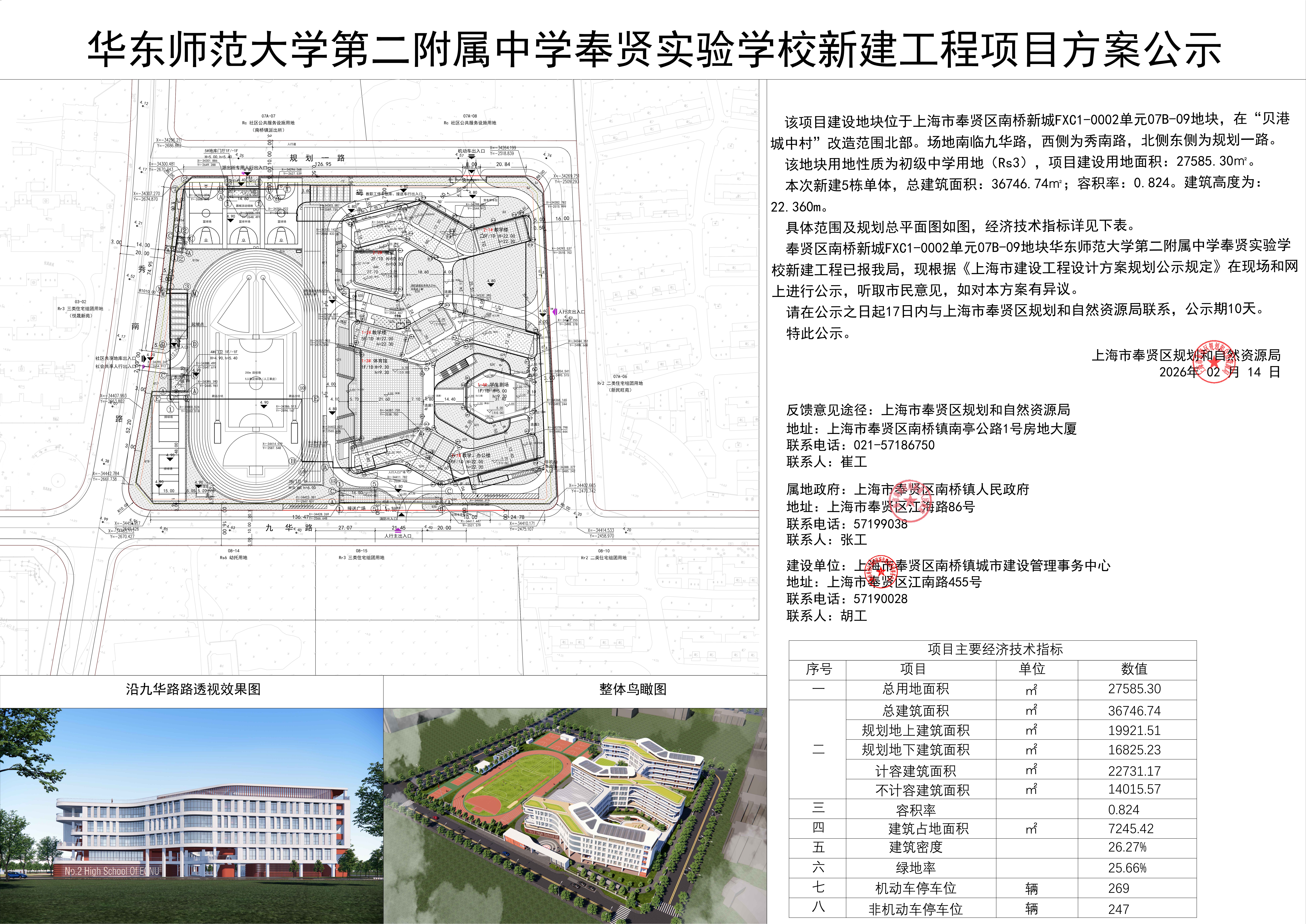 华东师范大学第二附属中学奉贤实验学校新建工程项目方案公示