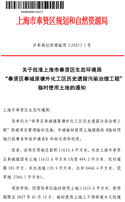 【临时用地】沪奉规划资源临用〔2025〕1号