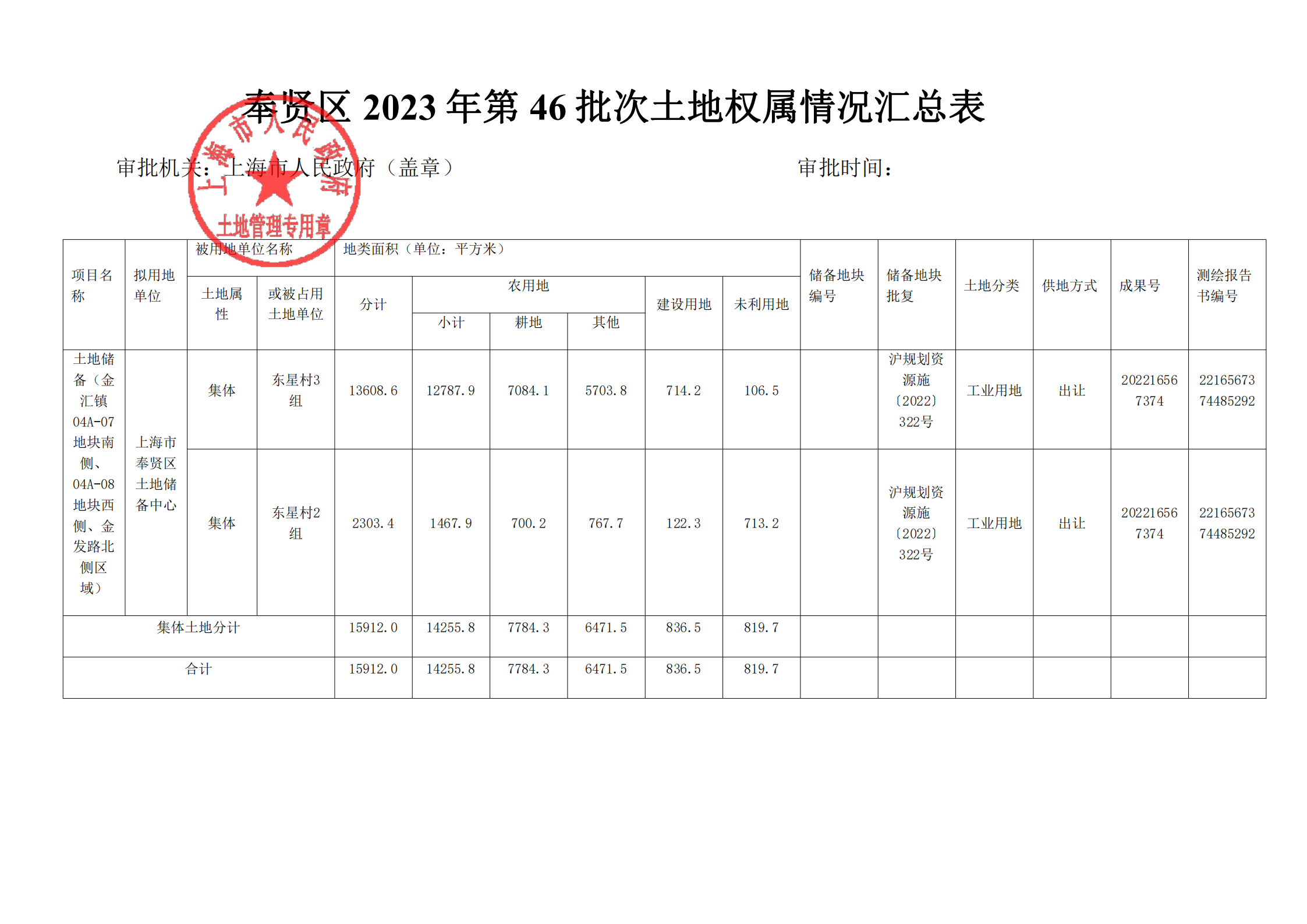 沪府土[2023]1137号(2023-46批次)
