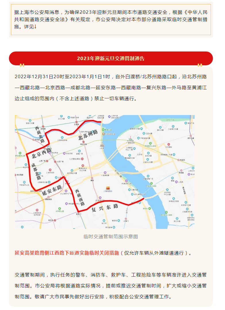 2023年元旦期间,上海这些区域、道路将临时交通管制