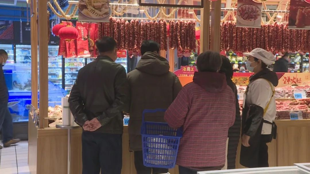 据了解,近期超市销售比较好的商品主要是各种年夜饭备菜类食品,特别是现灌香肠、腊肉、盐焗鸡等,同时今年预制菜肴消费趋势明显提升,双休日不少年轻人前来选购。