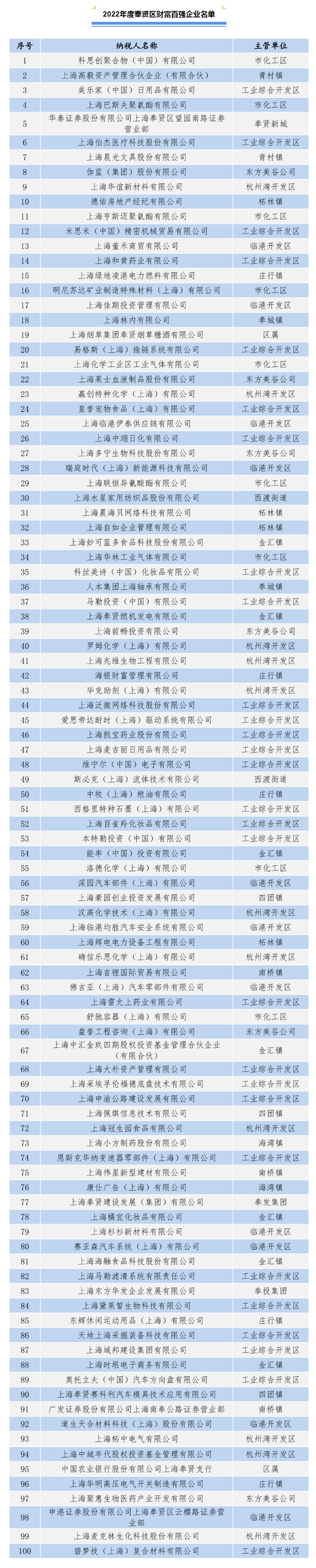 纳税总额207.5亿元!2022年度奉贤财富百强企业出炉 发布时间:2023年02月03日