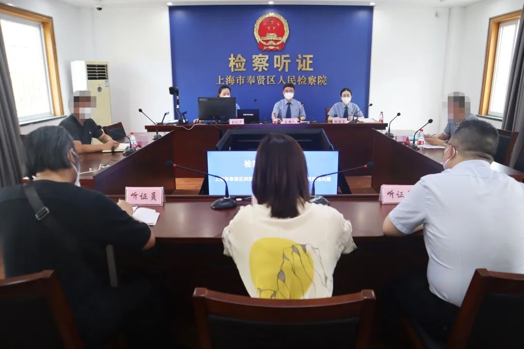 聚焦案件根源,锁定土地资源行政监管主体,为厘清行政职能部门与属地政府在耕地资源保护利用问题上的行政监管职责权限,明确各行政机关对涉案问题的履职情况,2022年6月22日,奉贤区检察院召开公开听证,“益心为公”检察云平台志愿者何洁等两名志愿者和一位人民监督员共同担任听证员。