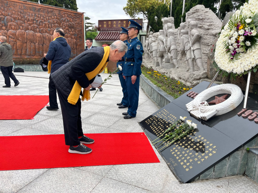 随后,在深情的《献花曲》中,部队战士庄重地走向烈士纪念碑,敬献花篮,在场的社会各界人士依次向纪念碑行鞠躬礼、敬献鲜花,寄托对先烈的哀思。