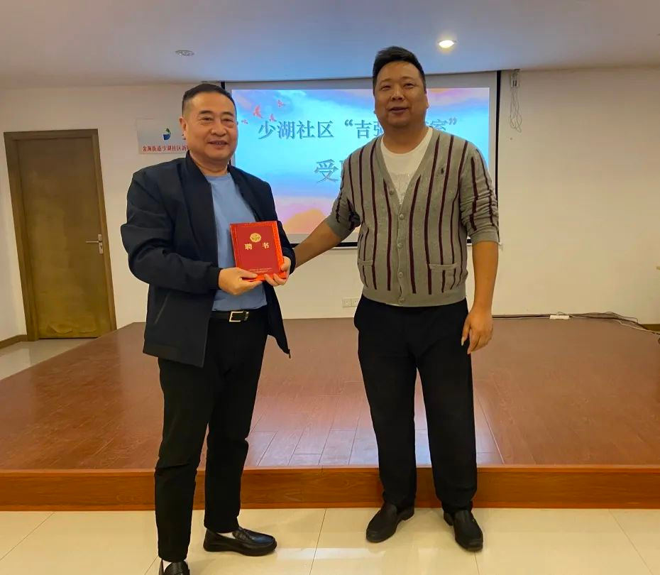 本次工作室成立,由金海司法所所长沈军为吉强同志颁发聘书,正式成为一名少湖社区法律调解员。