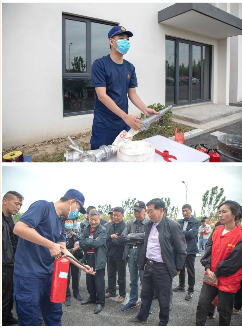 消防救援队员为村民们介绍了灭火器的种类、灭火器的正确使用及使用灭火器的注意事项等各类消防安全知识,并进行现场示范。